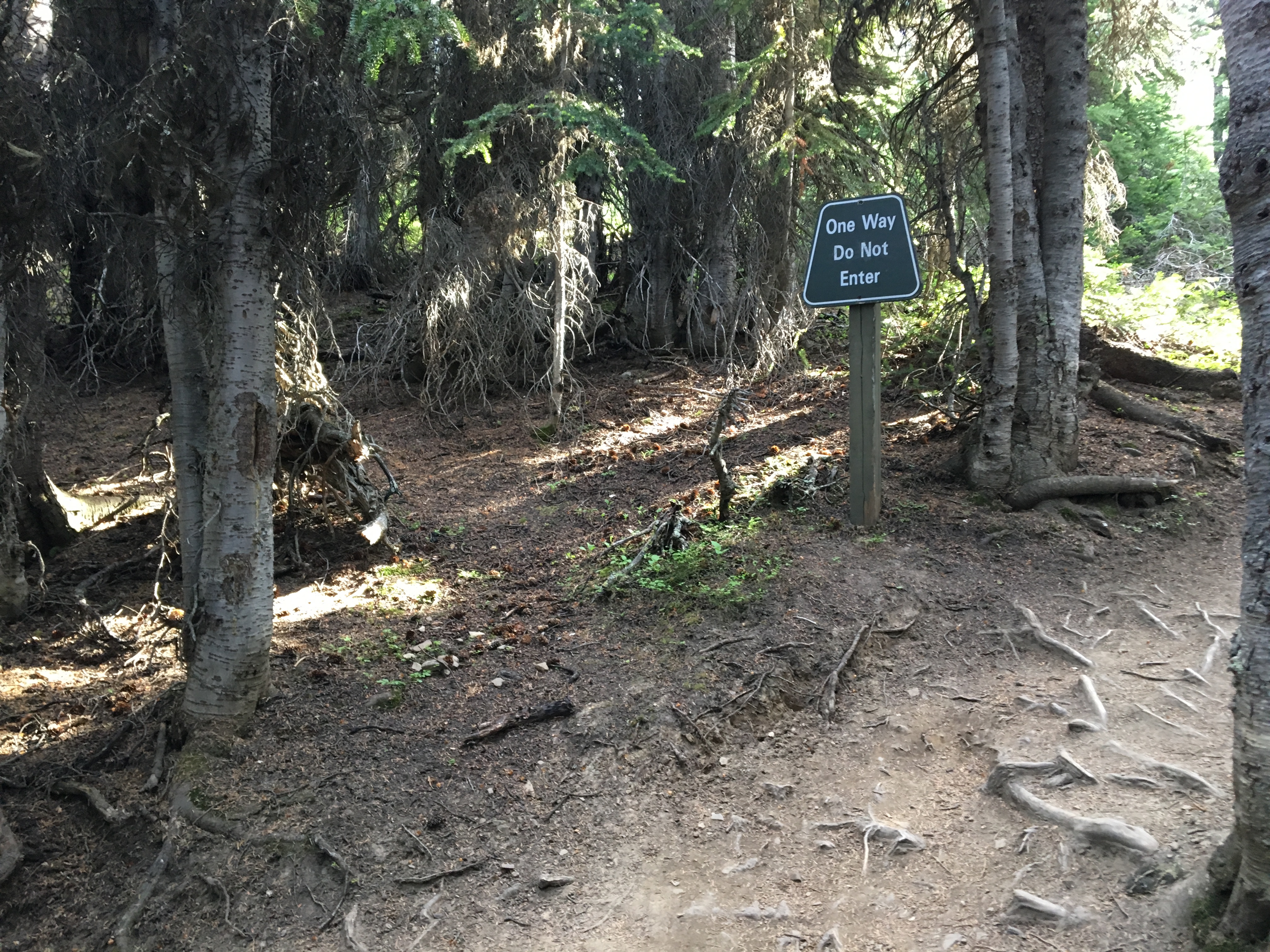 Once you’re ready to start, the trail takes you along the highway a short way to a marked crosswalk allowing you to get on the proper (east) side of the the road. Thereafter, you’re starting your climb through cool pine forest. The trail is marked occasionally with numbered “stops”. These suggest the existence of some sort of interpretive brochure, but I didn’t see any at the trailhead. In any event, they function as a good way of marking rest stops for when little legs start to get tired.