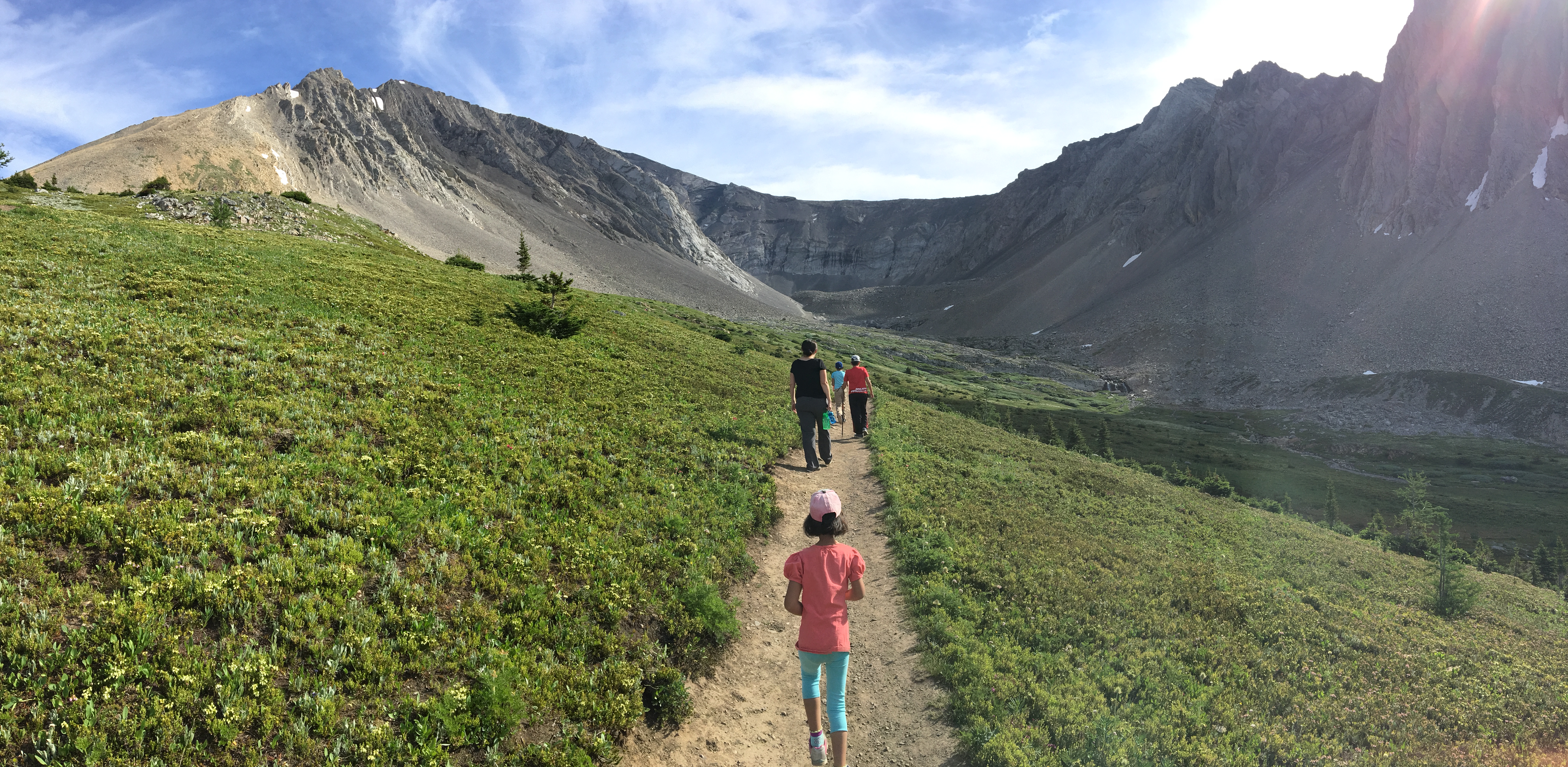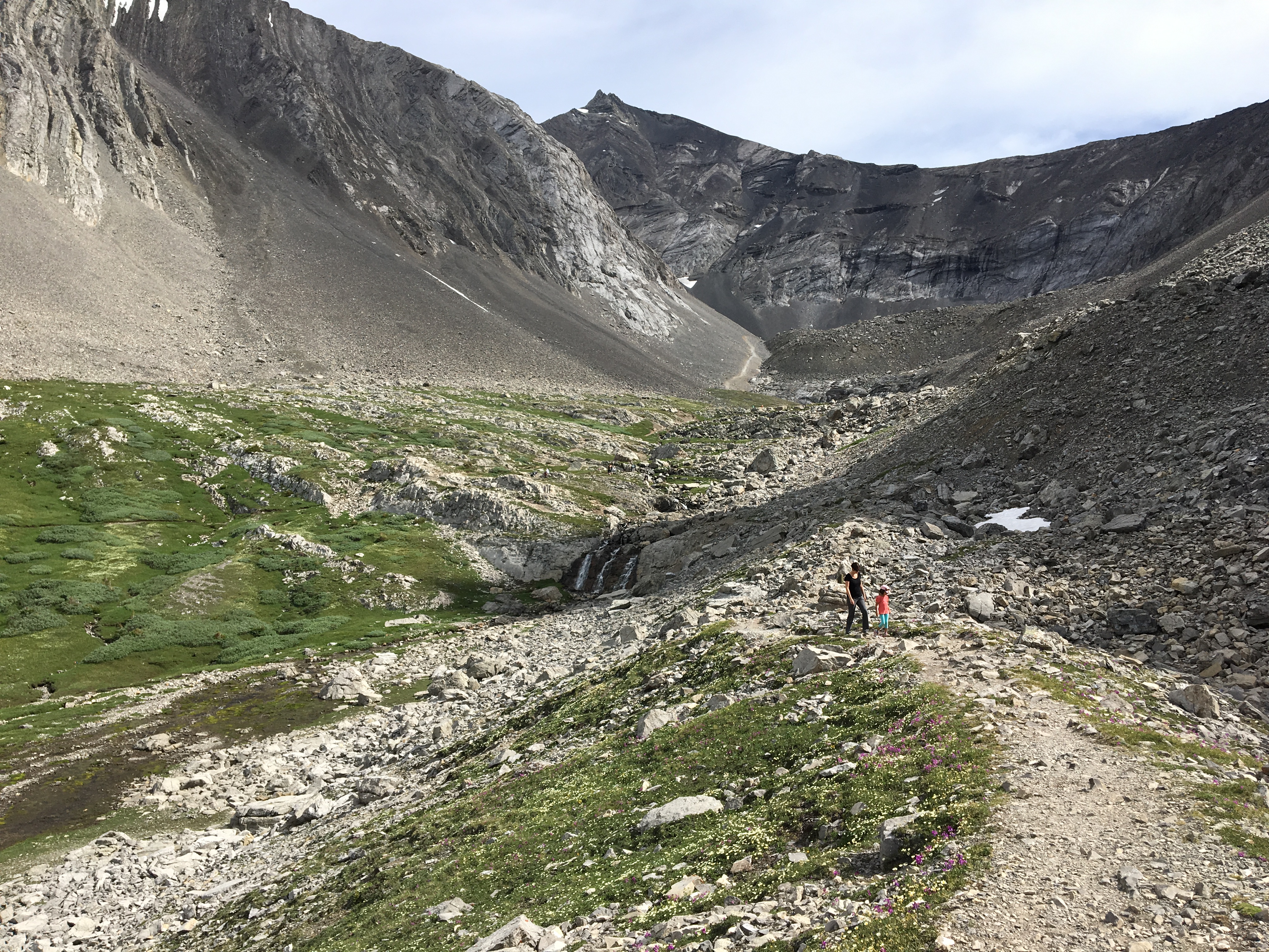 July 8, 2017. This was a family outing with kids, aged between 5 and 11. Ptarmigan Cirque is definitely in my top 3 in terms of best hikes to do with kids (Grassi Lakes and Bear’s Hump would be the other 2 on that list). There’s a bare minimum of uphill slog followed by amazing alpine views, fields of wild flowers and kid-sized adventures with rock-hopping, marmot-spotting and easy stream crossings. There are also some very nicely maintained pit toilets at the parking area – a major factor in the enjoyment of any hike with kids.