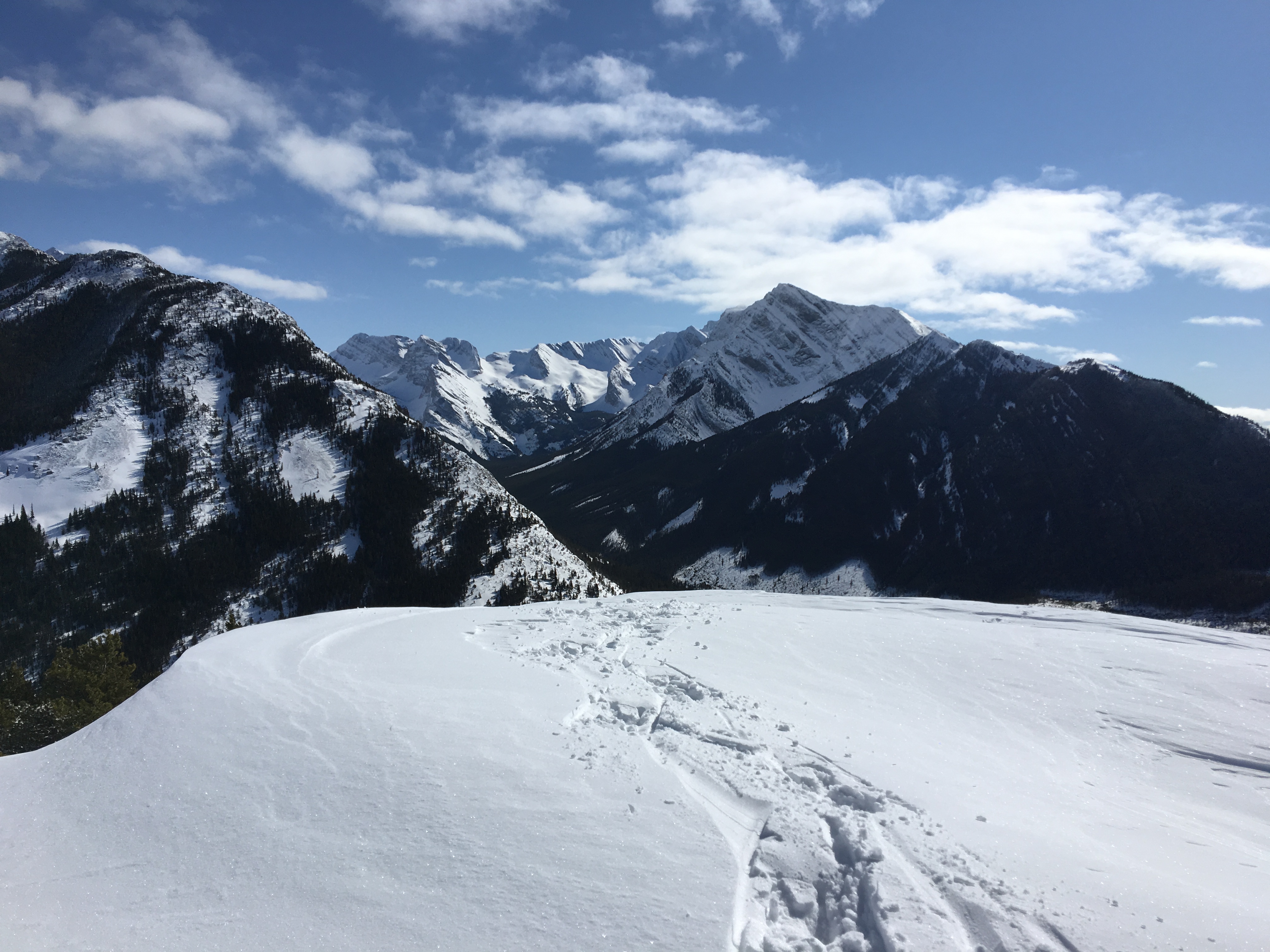 This is a trip I’ve been sizing up since the beginning of the winter. It’s described by Dave McMurray on his amazing Peaks and Streams blog, which drew the attention of Andrew Nugara, who included it in A Beginner’s Guide to Snowshoeing in the Canadian Rockies 2nd ed. The weather forecast was for a warm, sunny day. Most miraculously, there was minimal wind forecast. I seized the opportunity and hit the road.