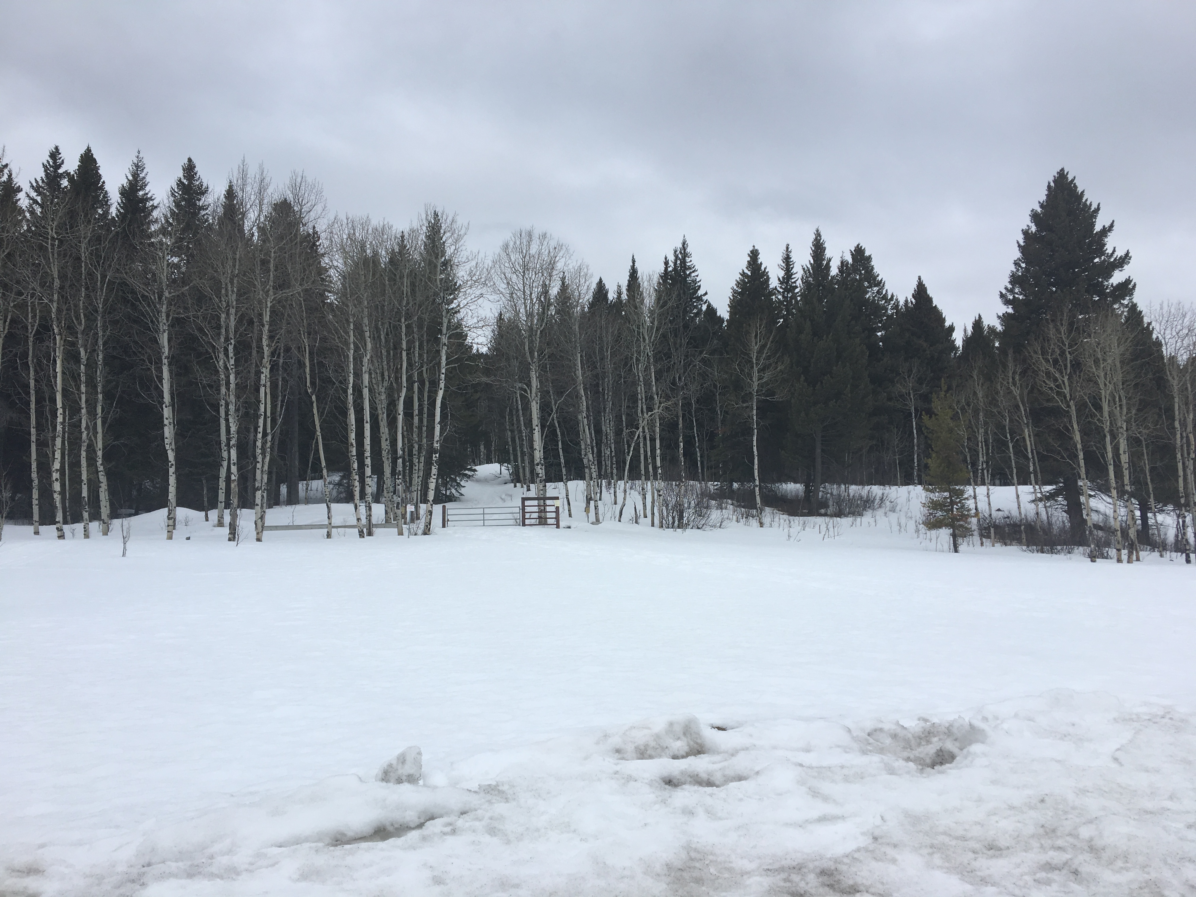 The close gate which marks the start of the route. Some basic fence-jumping skills are needed. The road was snow-free. Without snowshoes, one step off into the snow resulted in sinking down to my knees.