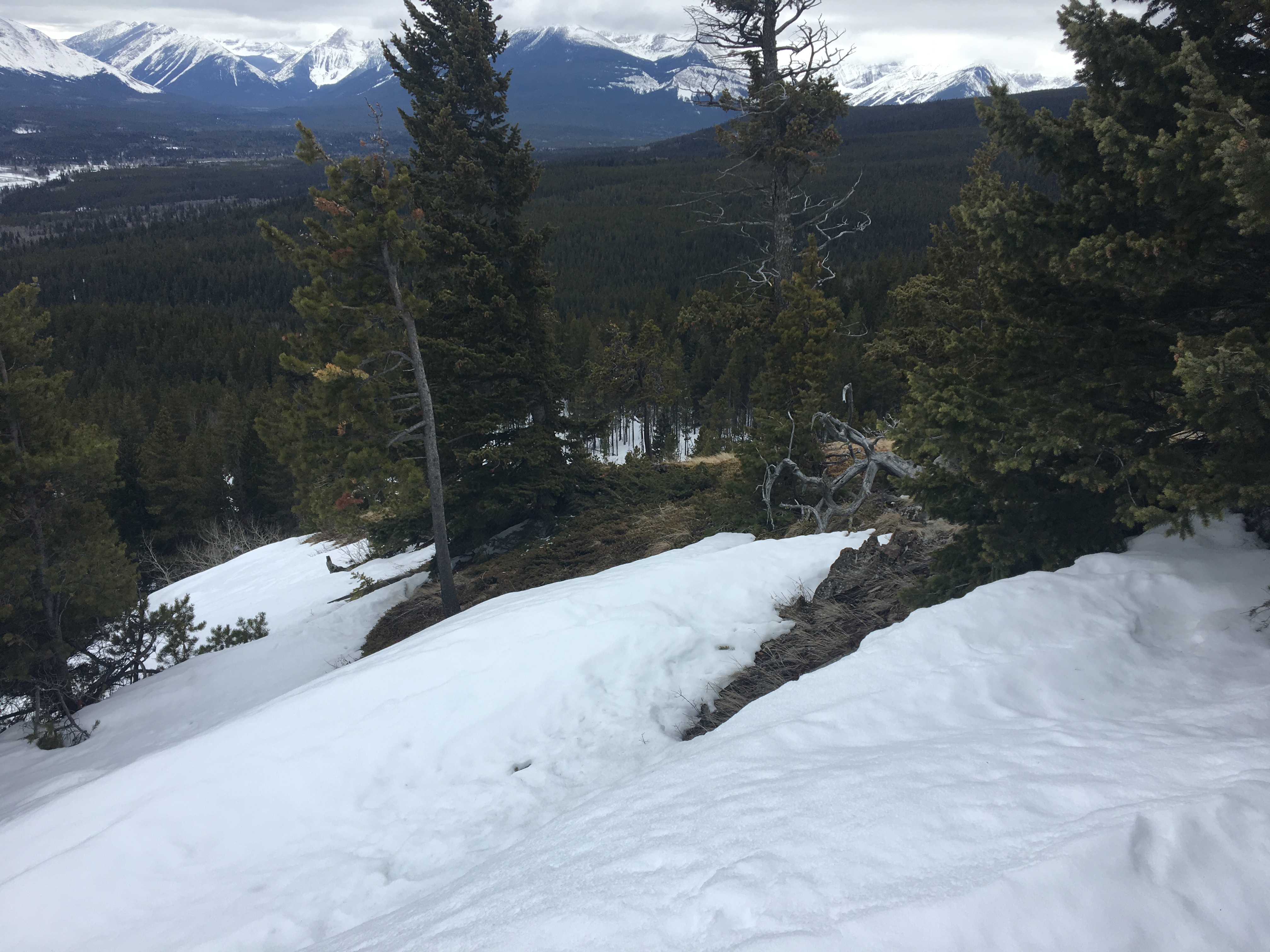 Looking downhill after a fairly steep bit of climbing. This picture doesn’t really do it justice. The snow was perfect – I could kick in with the crampons on my snowshoes and my weight was supported. In softer snow conditions I can imagine this stretch would be challenging.