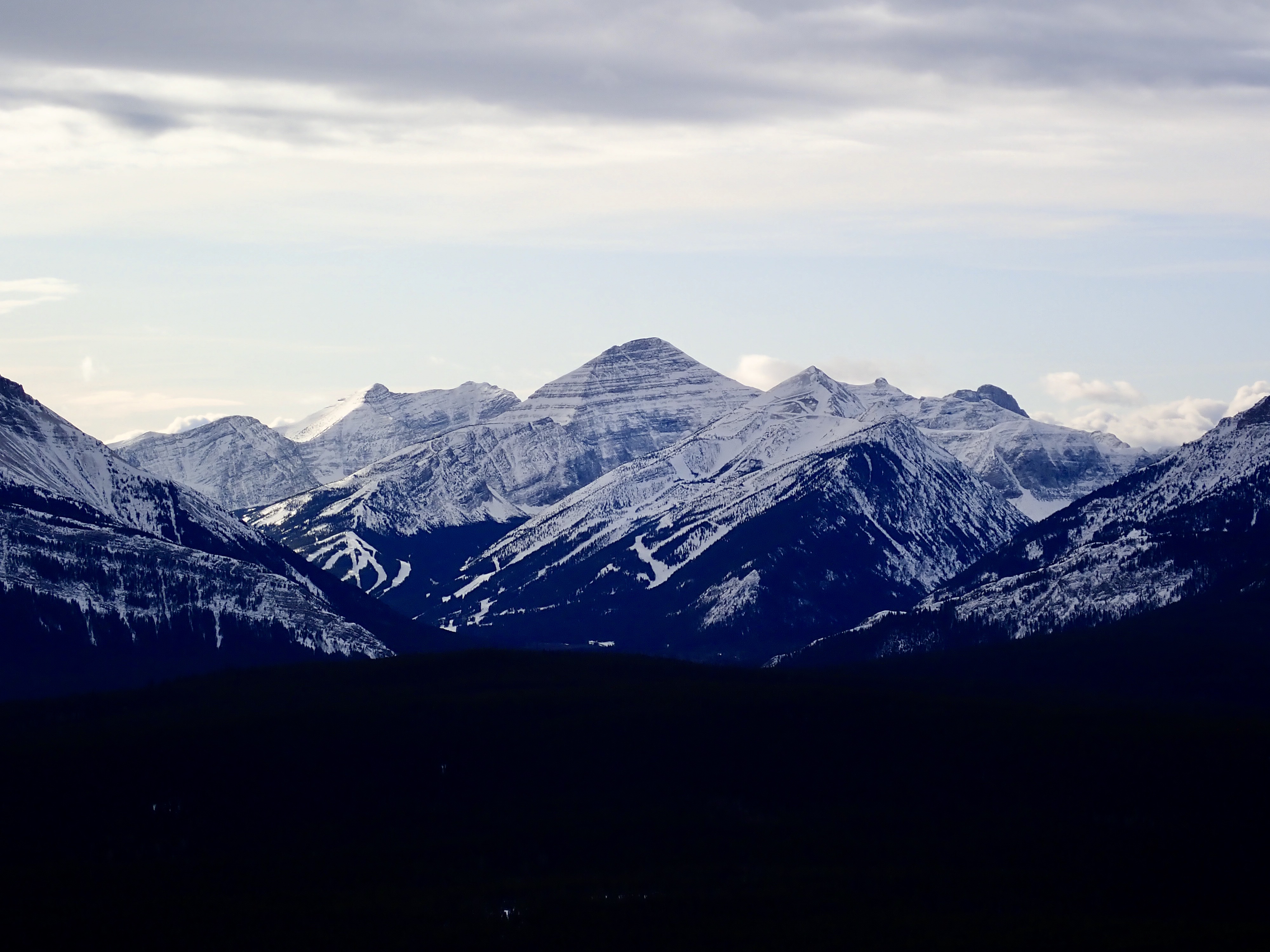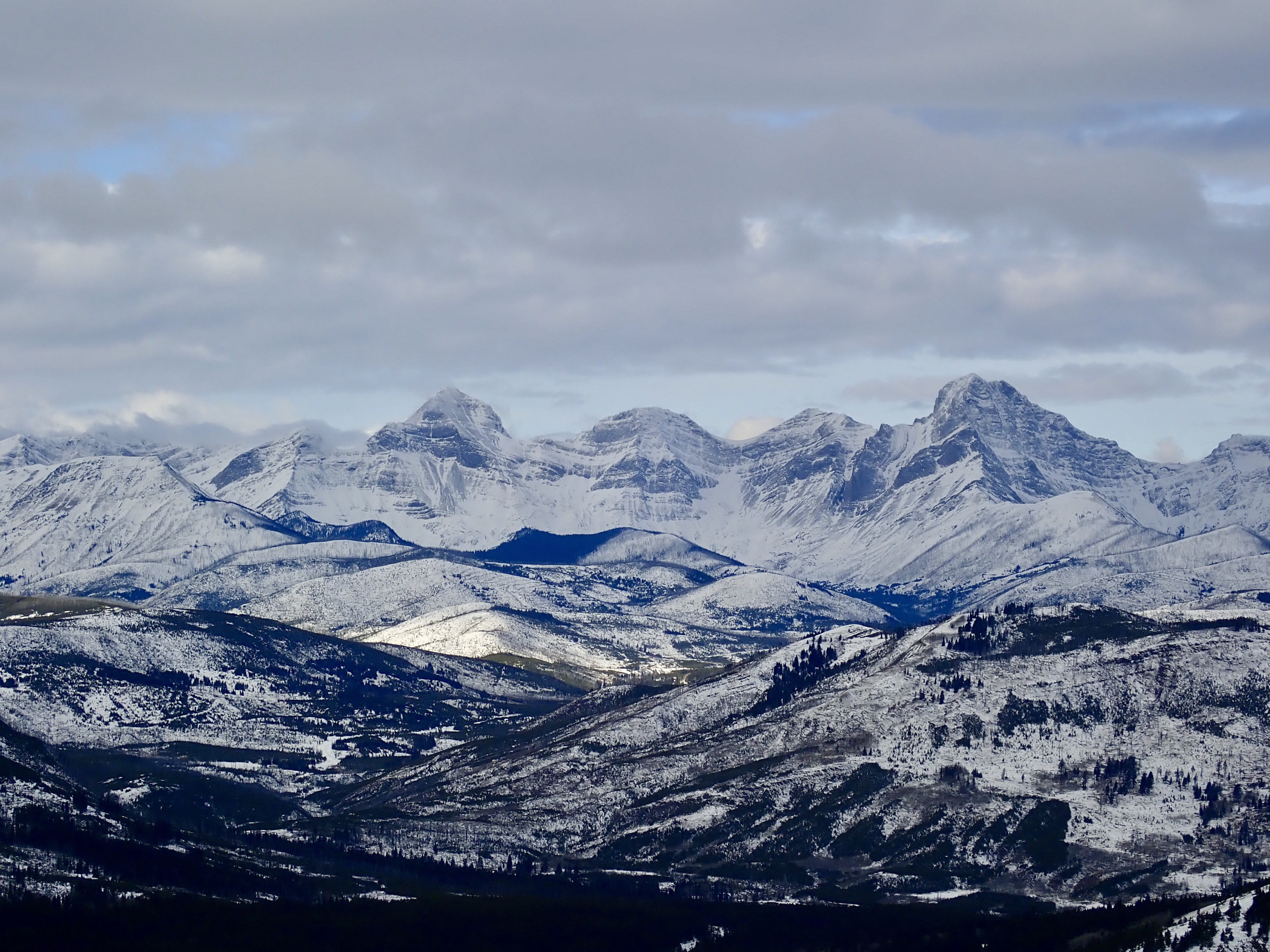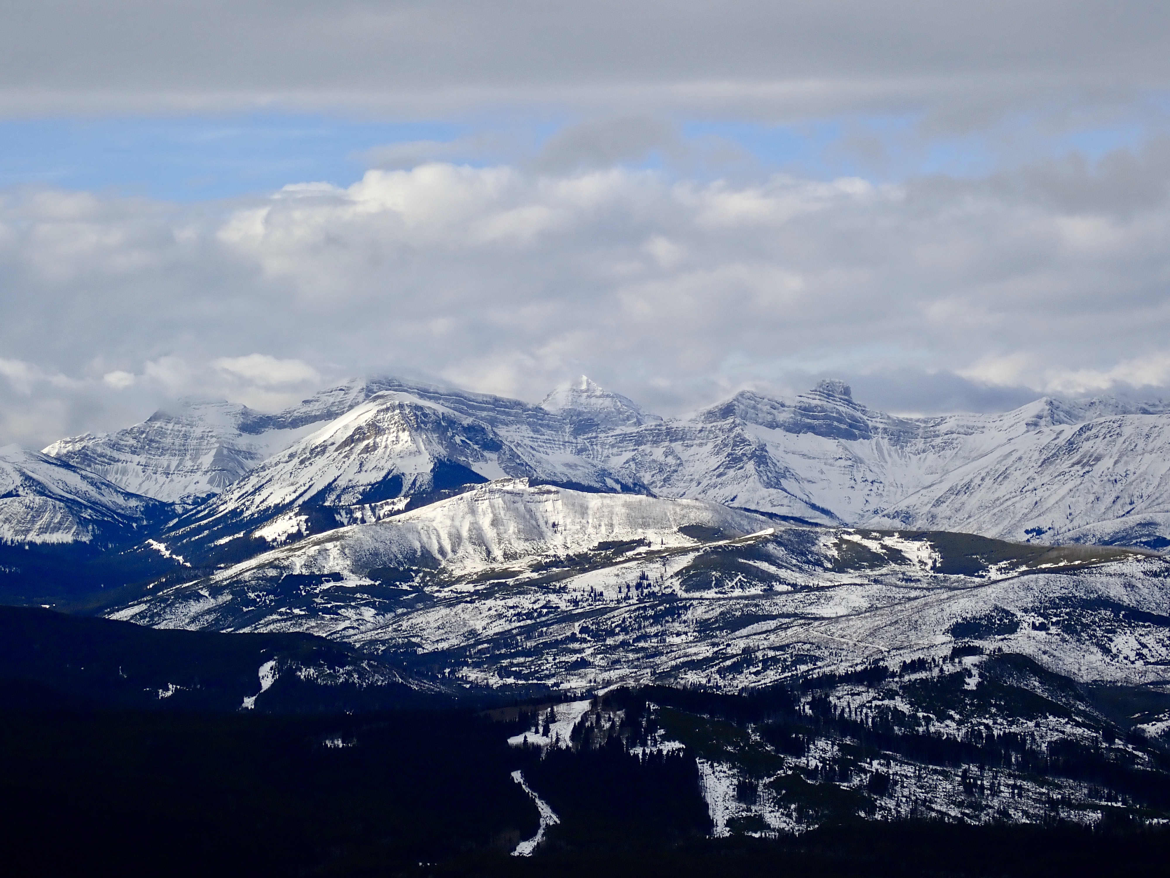 Looking north at the big continental divide peaks in the Crowsnest Pass area.