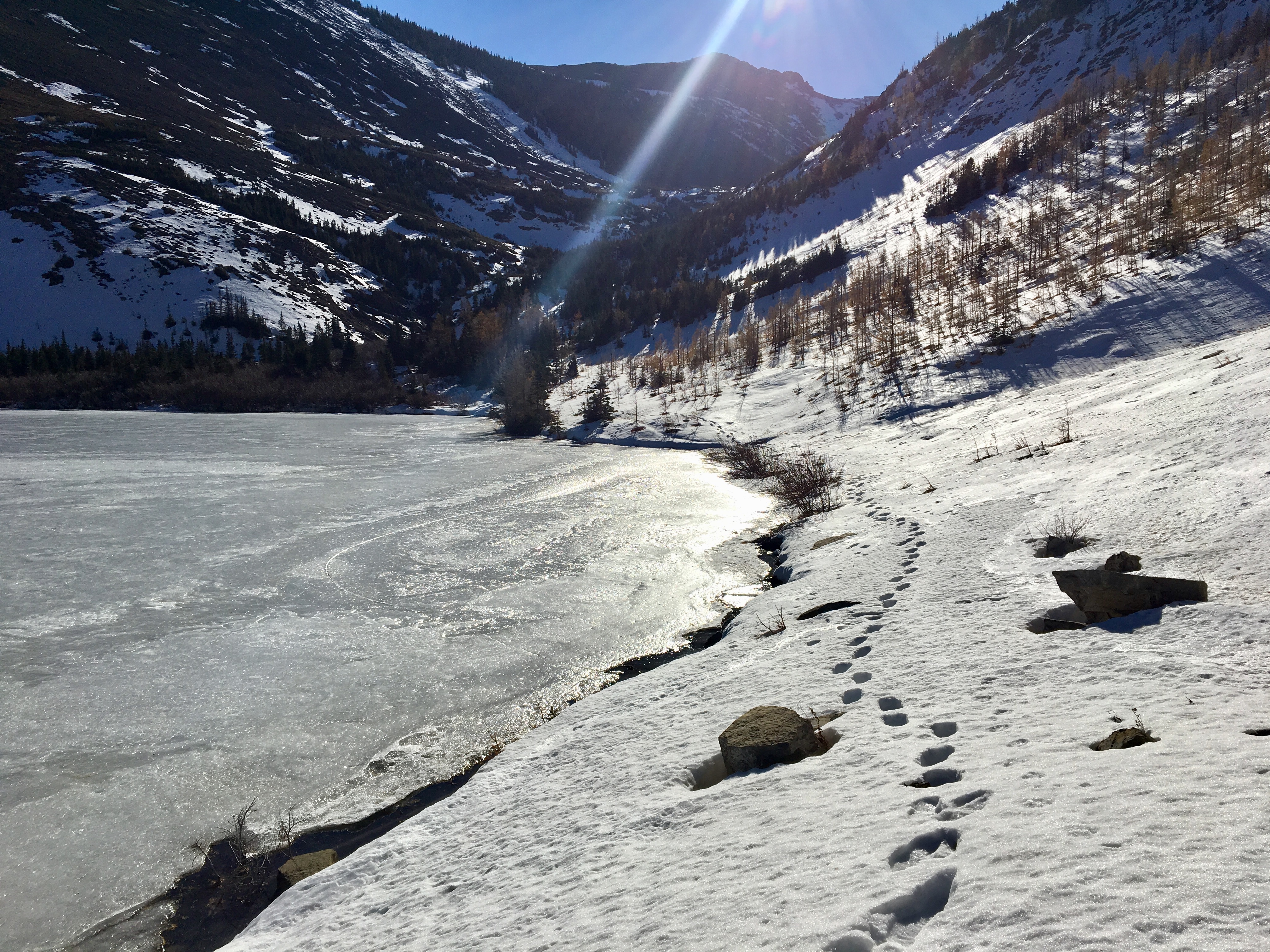 I hiked up solo on the 30th, half of the lakes up top we’re thawed again by then and I only encountered a little bit of snow where I saw what must have been your footprints