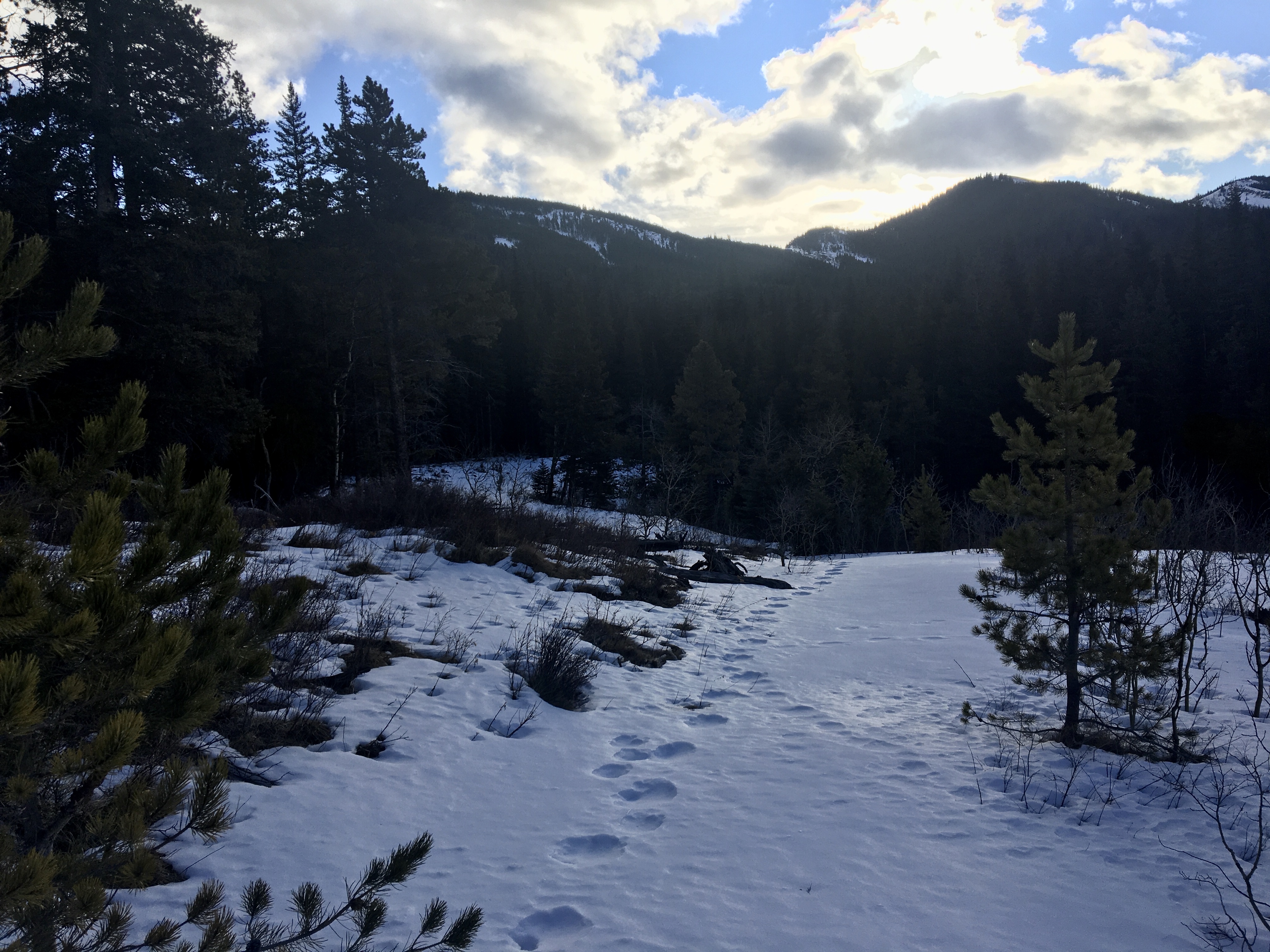 For my first summit of 2020, I decided to knock another objective off the list from Nugara’s A Beginner’s Guide to Snowshoeing in the Canadian Rockies. The weather was promising – a killer cold-snap was several days in the past and the warming weather was not yet accompanied by gale force winds. It was a good day out, though my views and time on the summit were both limited by a snow squall that rolled in as I reached the top.
