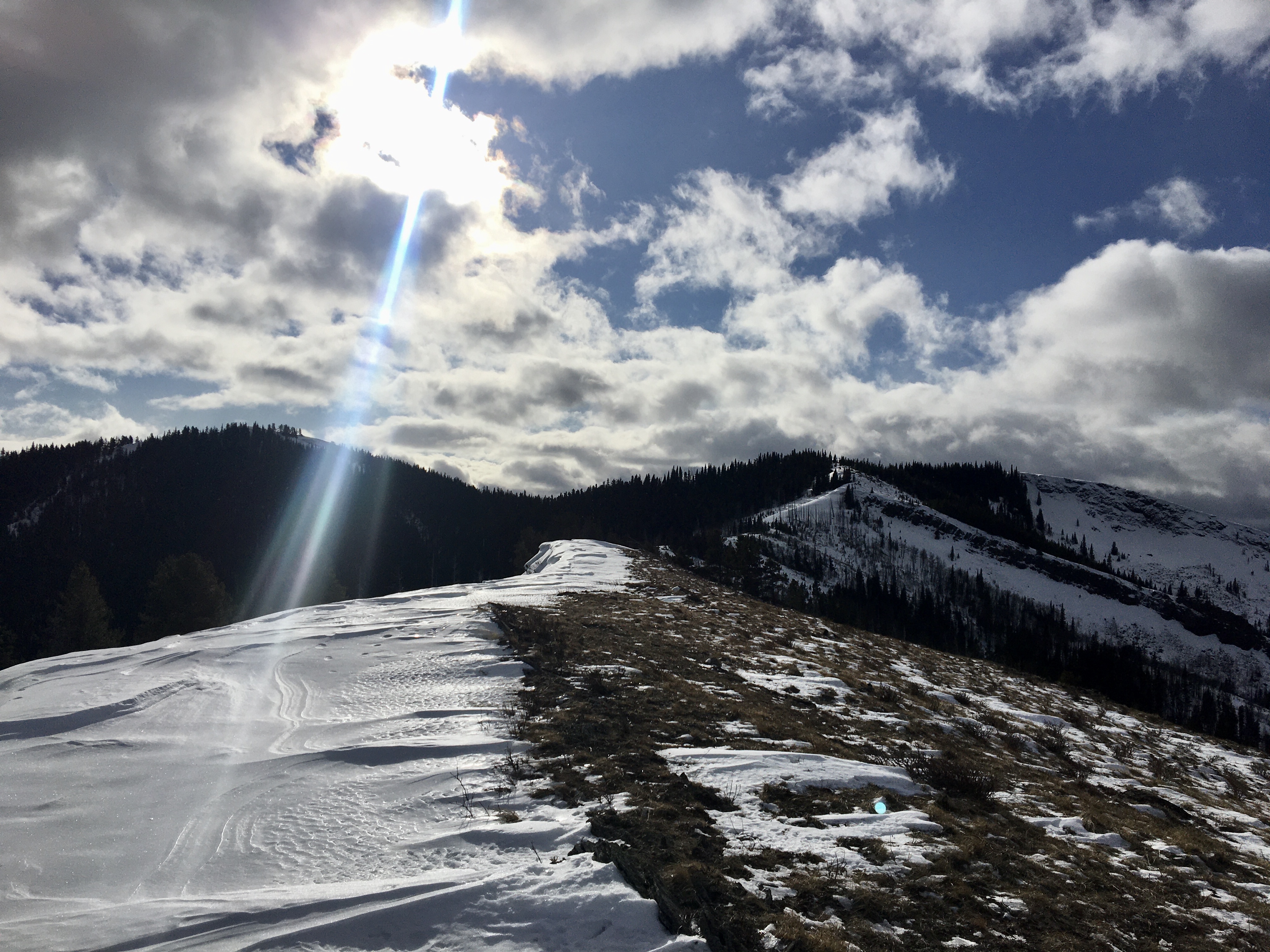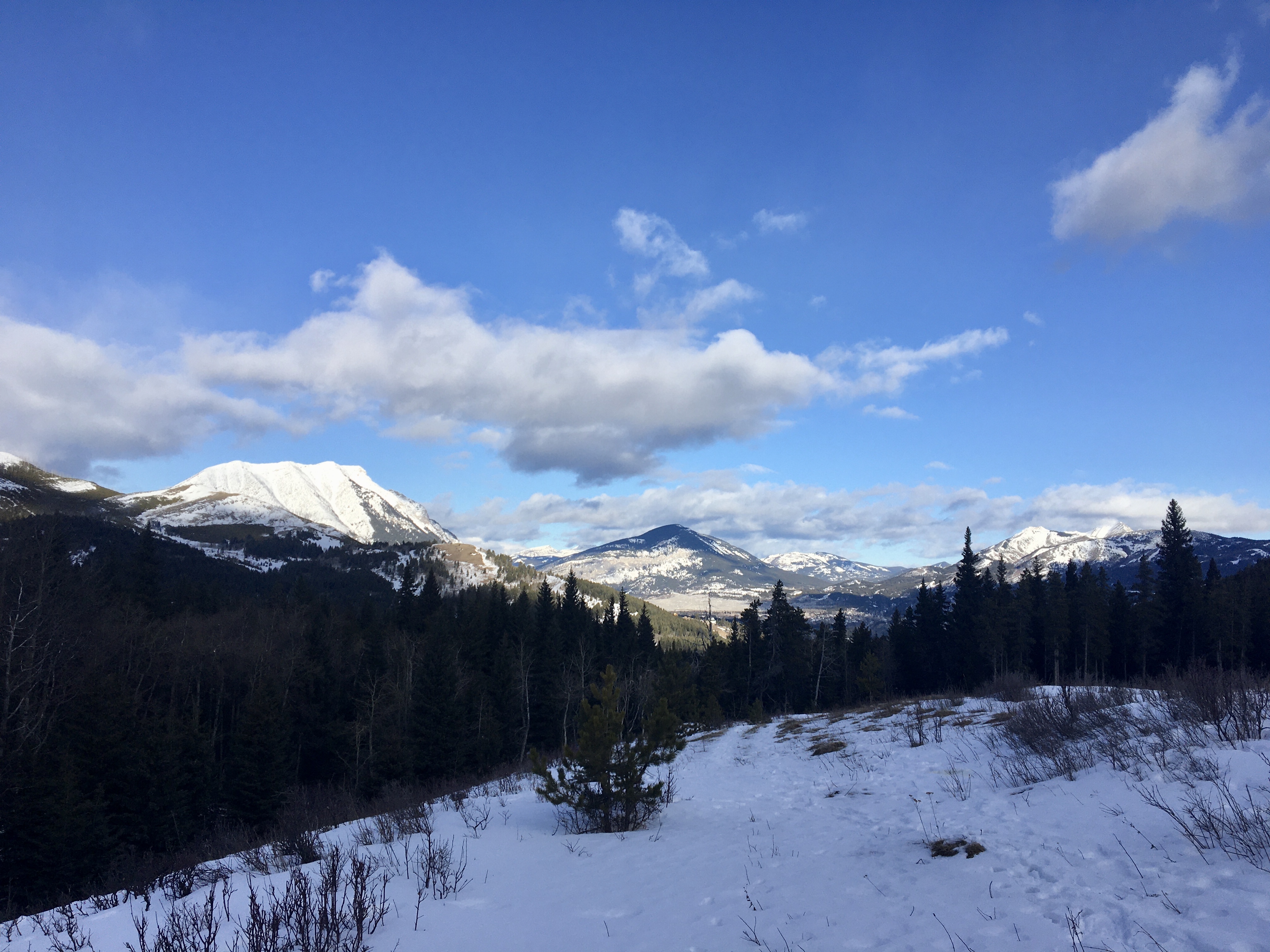 January 27, 2020. A snowshoe trip to a low summit in the Crowsnest Pass.