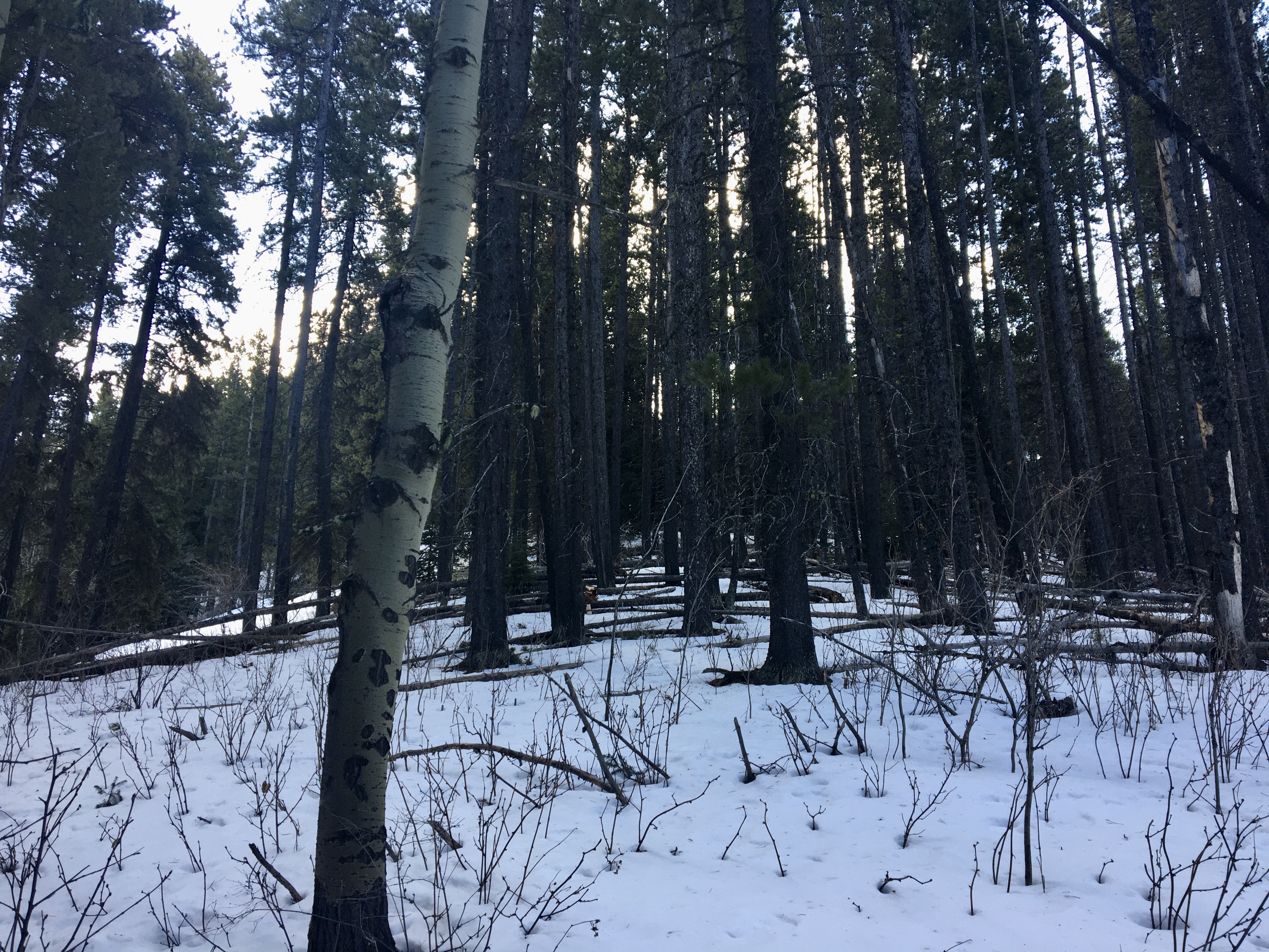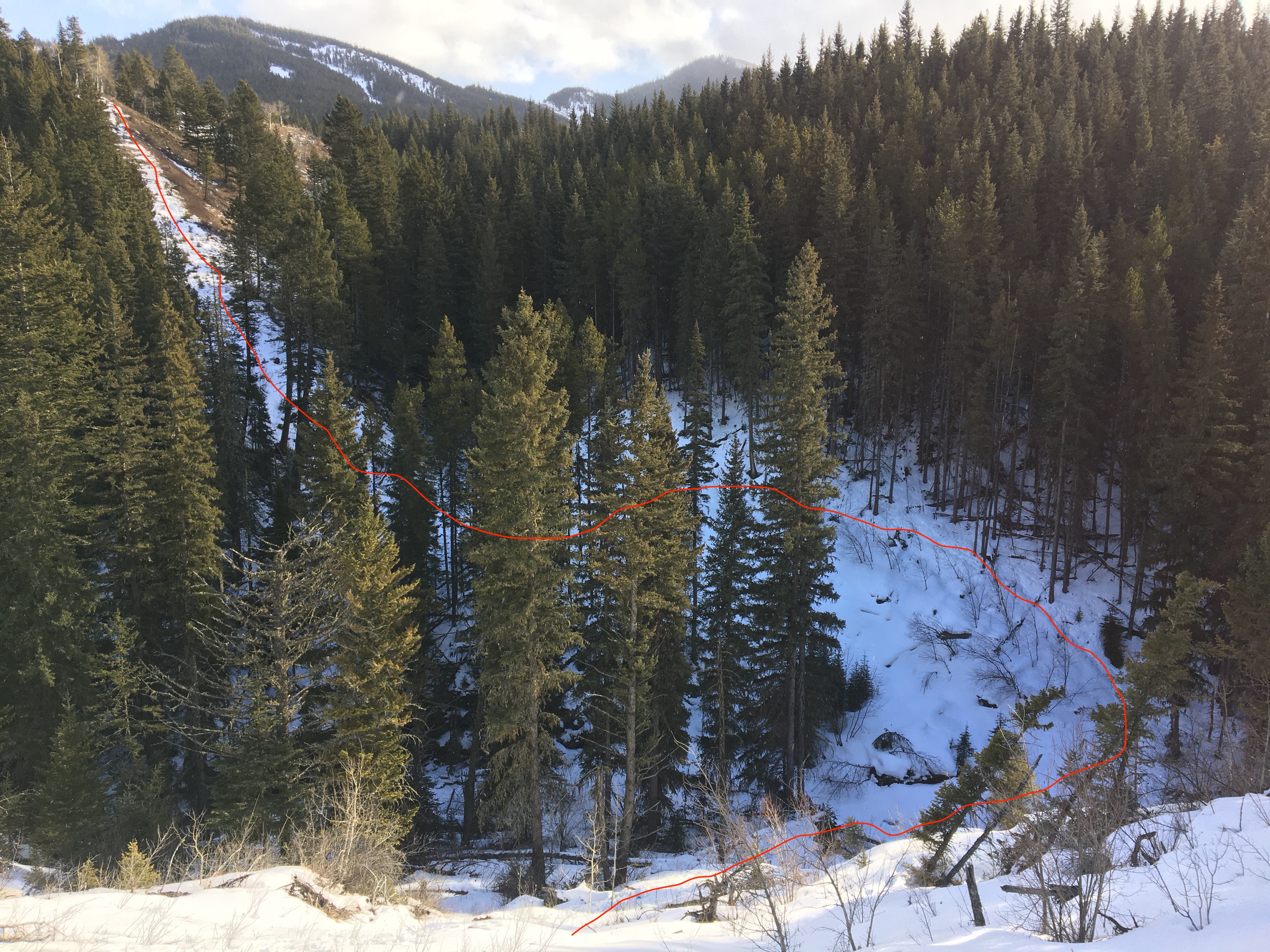 Access to the starting point of the trip is via Adanac Road. East of Bellevue on Hwy 3, there’s a marked turn-off to East Hillcrest. Turn here and follow East Hillcrest Drive southwest, across the river, and follow the bend as it turns northwest. Beyond the bend, about 500-600 meters, there’s a sharp left onto Adanac Road. Eventually, there’s a “No Winter Maintenance Beyond this Point” sign. If the road is still drivable, continue 1.2 km beyond here. The route starts just beyond a cattle gate where the road takes a sharp right turn. Ask Google Maps to drop a pin here and it’ll direct you there: 49.537626, -114.359716