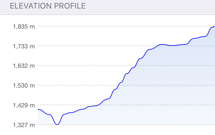 Elevation profile of my ascent route, presented primarily to show how sharp the descent to Byron Creek is.