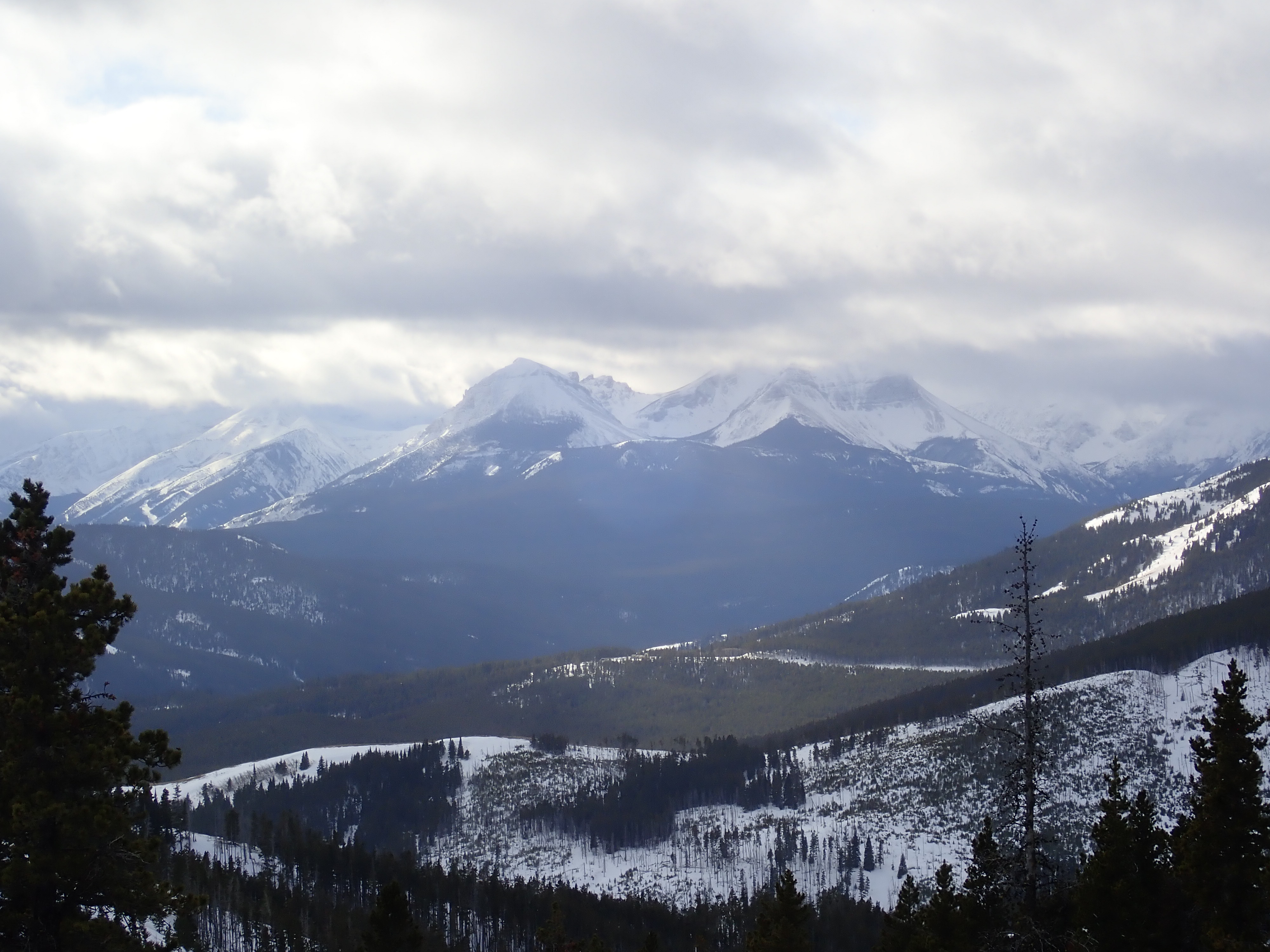 On a clear day, the big peaks of the Crowsnest Range would be visible in this direction.