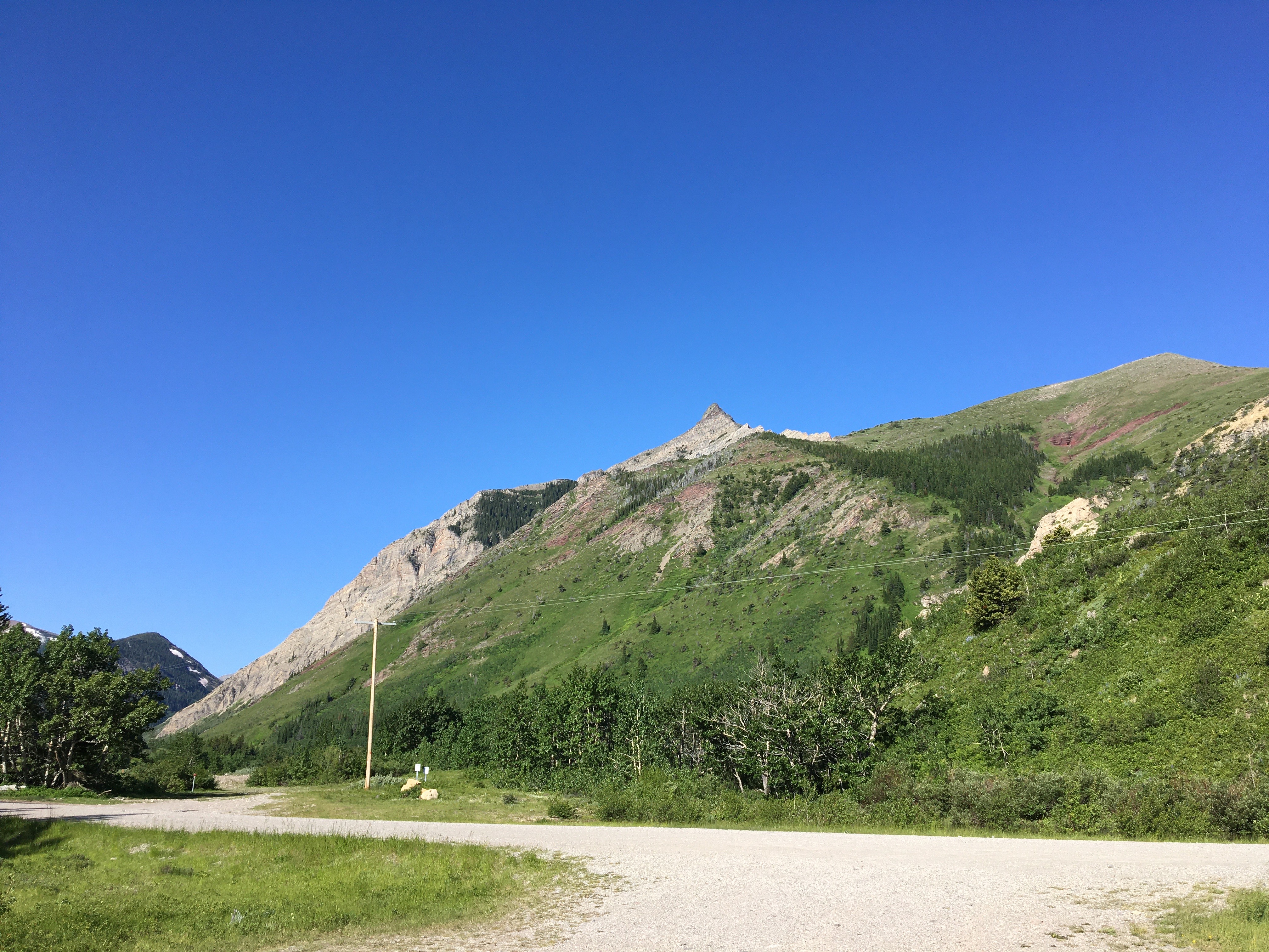 Pincher Ridge is one of the 5 parallel ridge lines in the southern Castle region immediately north of Waterton. The official summit is located on the northeast portion, and there are several routes that can be taken to reach the top. Nugara describes a few in More Scrambles in the Canadian Rockes 3rd ed. The routes he suggests for attaining the summit are rated “difficult; sections of steep, exposed scrambling; route-finding challenges”. This didn’t seem like my cup of tea. Luckily, there’s an easier way up, which Bob Spirko described in a a 2006 blog post. Spirko’s ascent to the summit was followed by a trip along the ridge to the central and southern high-points. I decided instead to just hit the true summit, then descend and check out Drywood Falls, which turned out to be only a short walk from the start of the scrambling route.