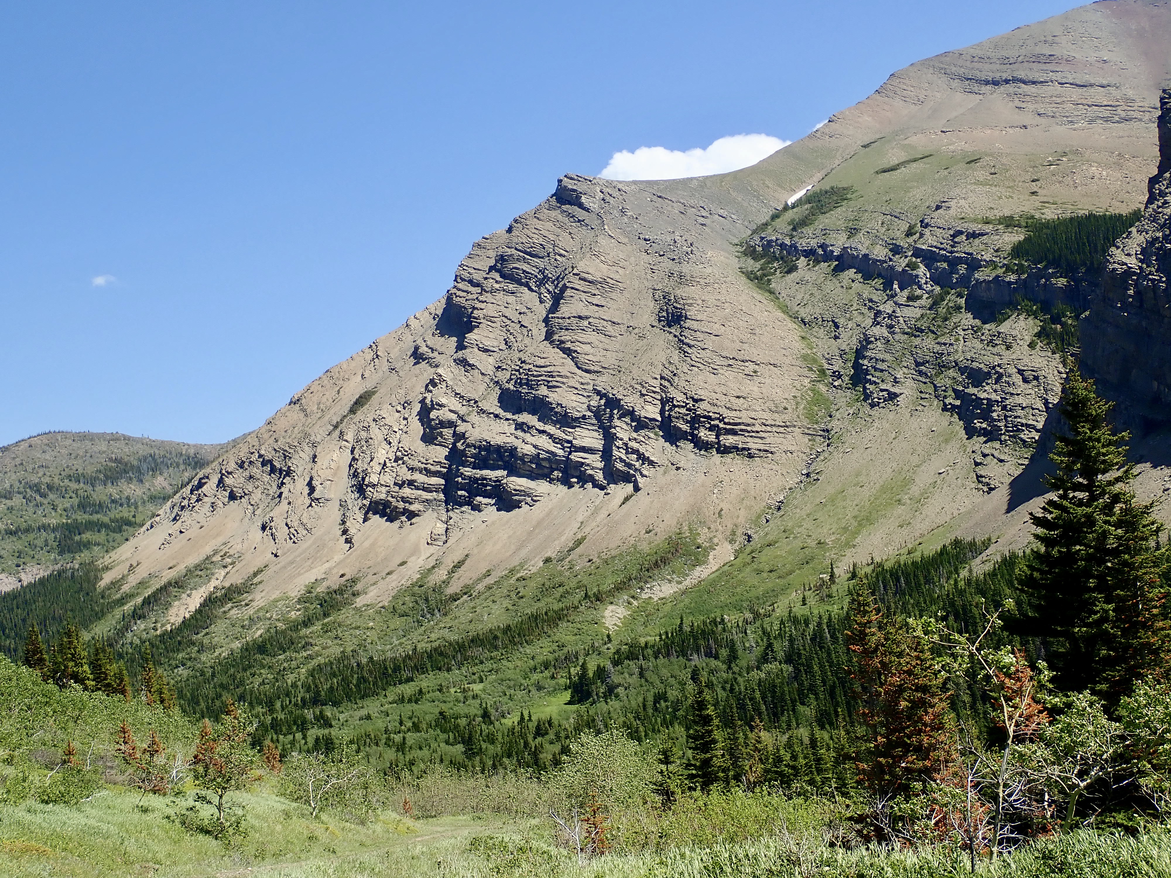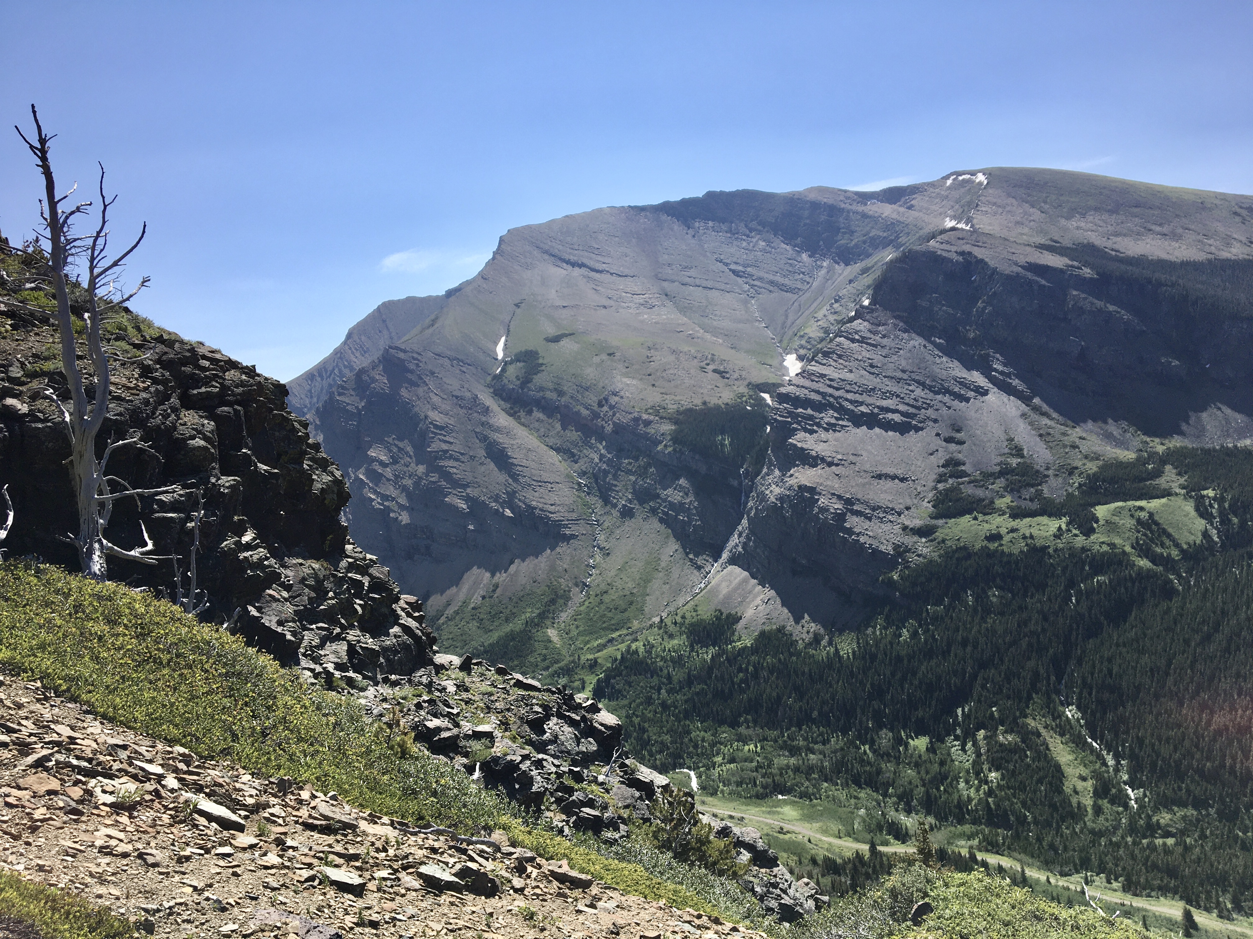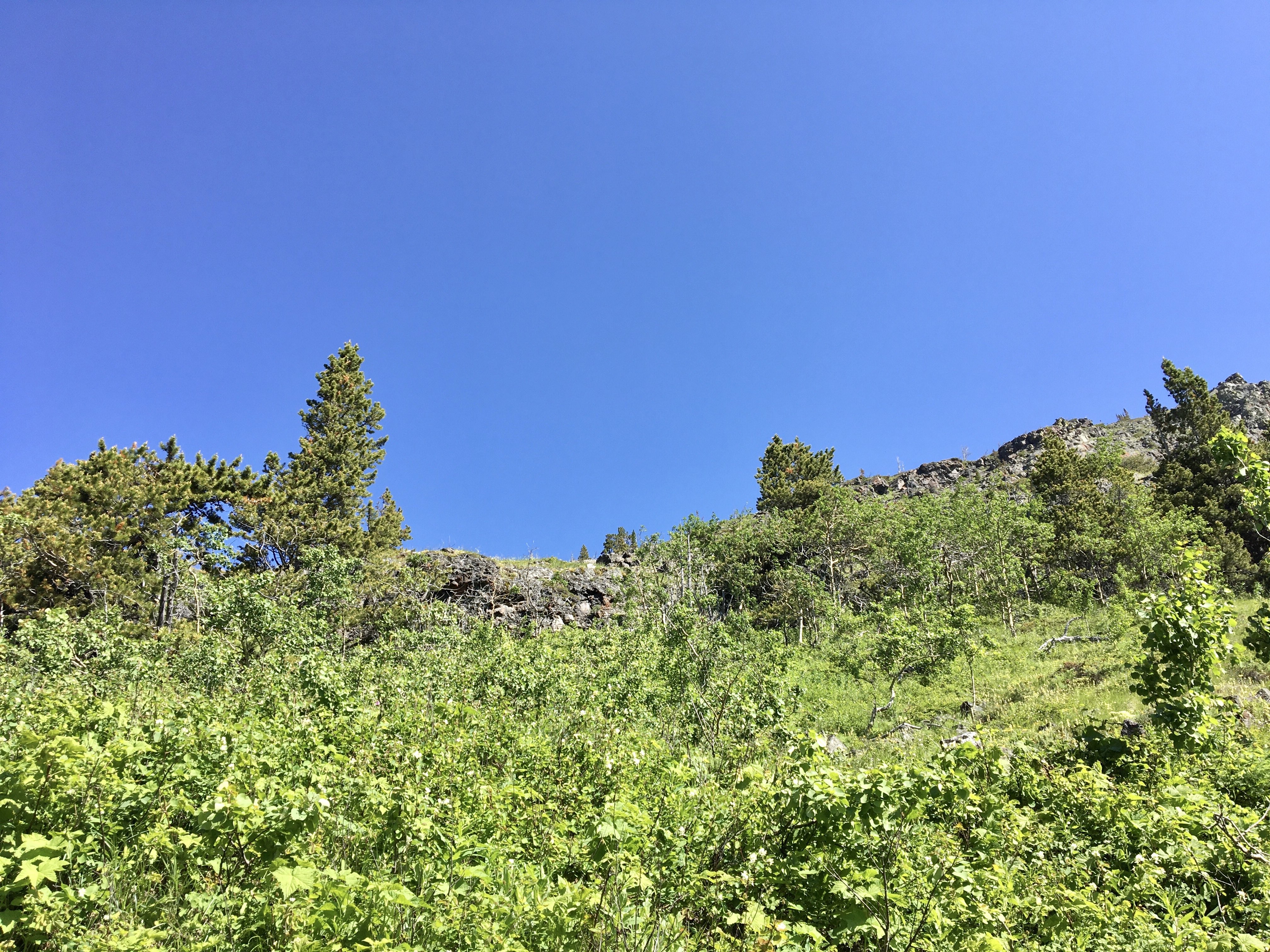 July 3, 2020. An easy scramble (with some unpleasant bushwhacking) to the summit of Pincher Ridge in the Castle Wilderness, followed by a quick visit to Drywood Falls.
