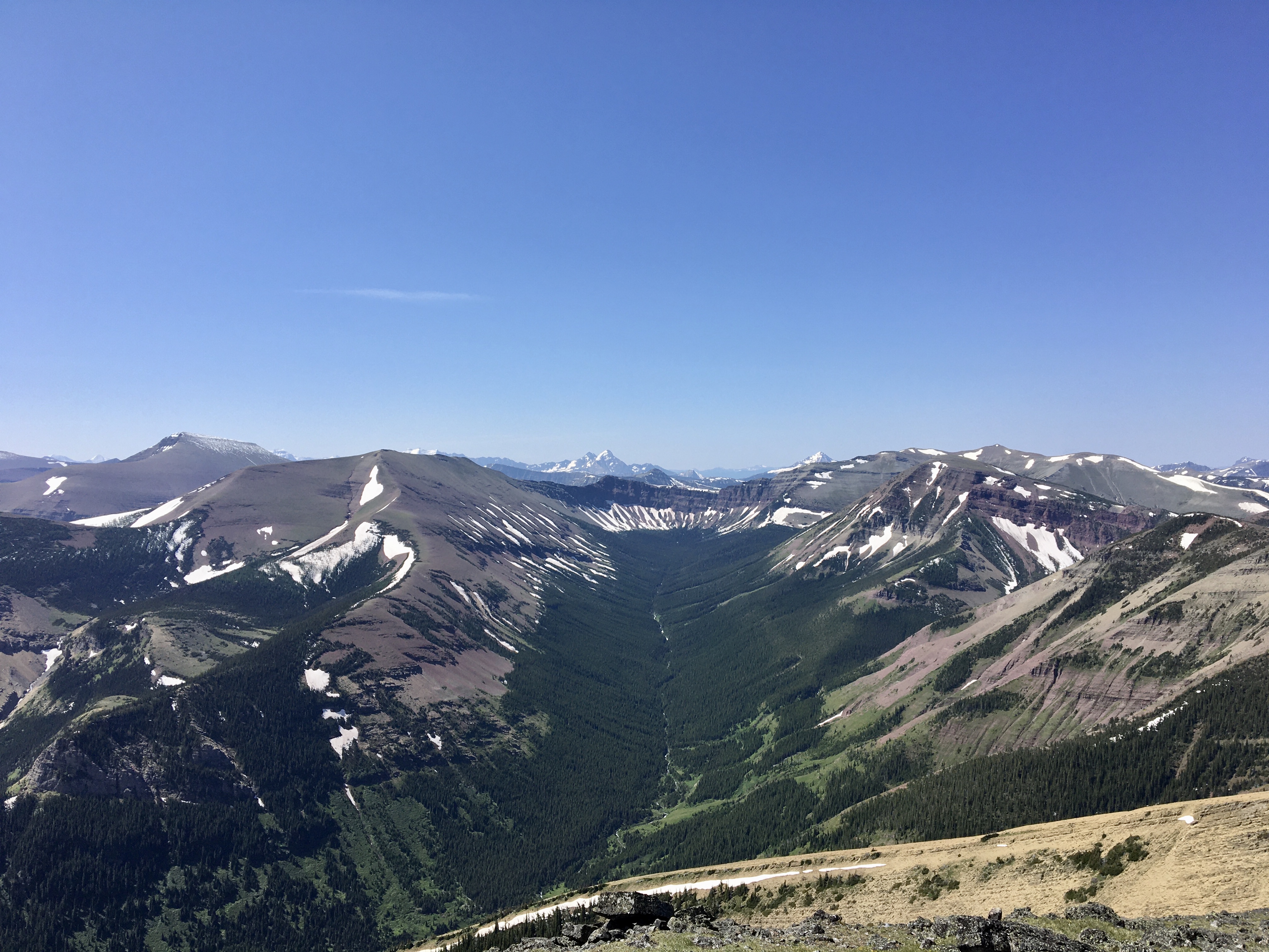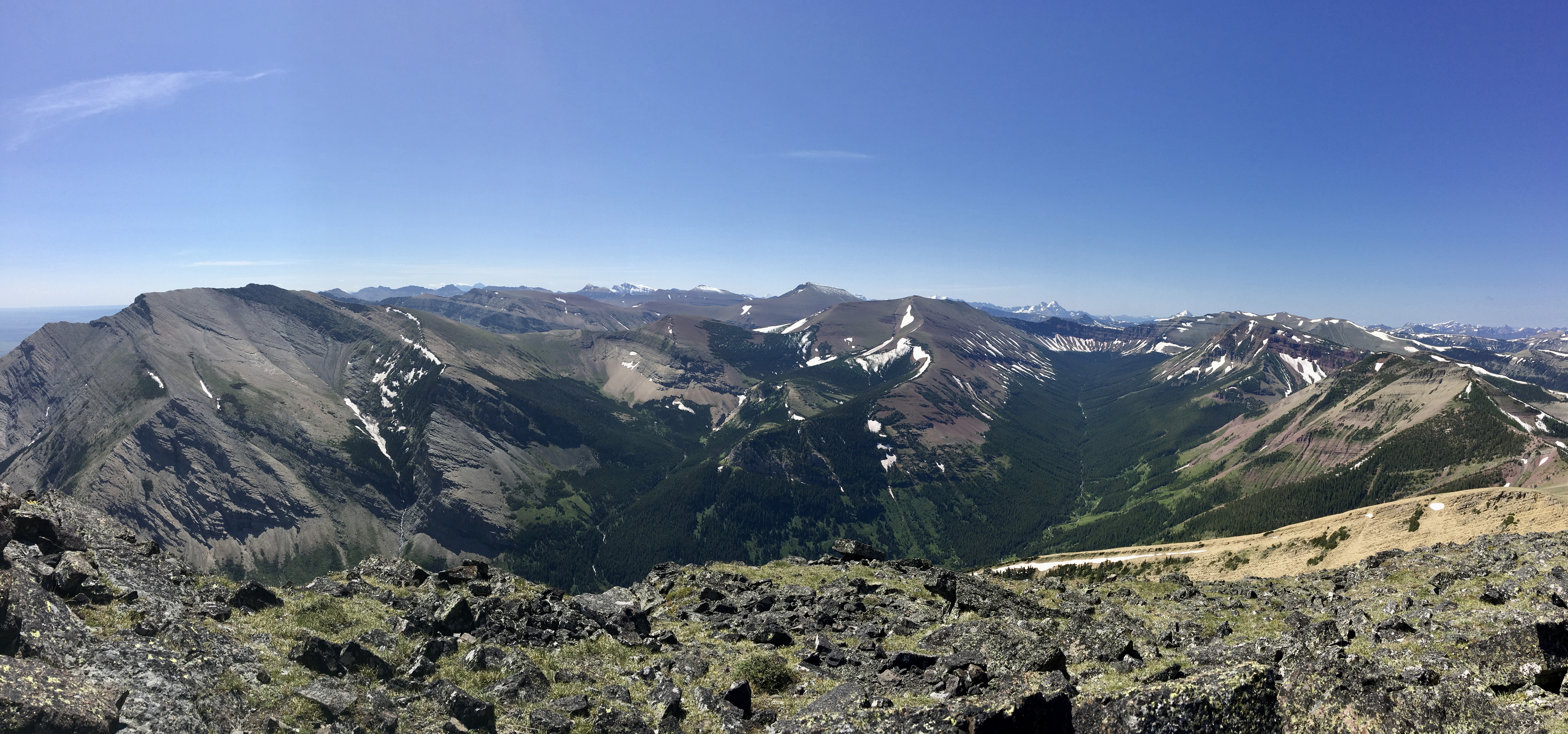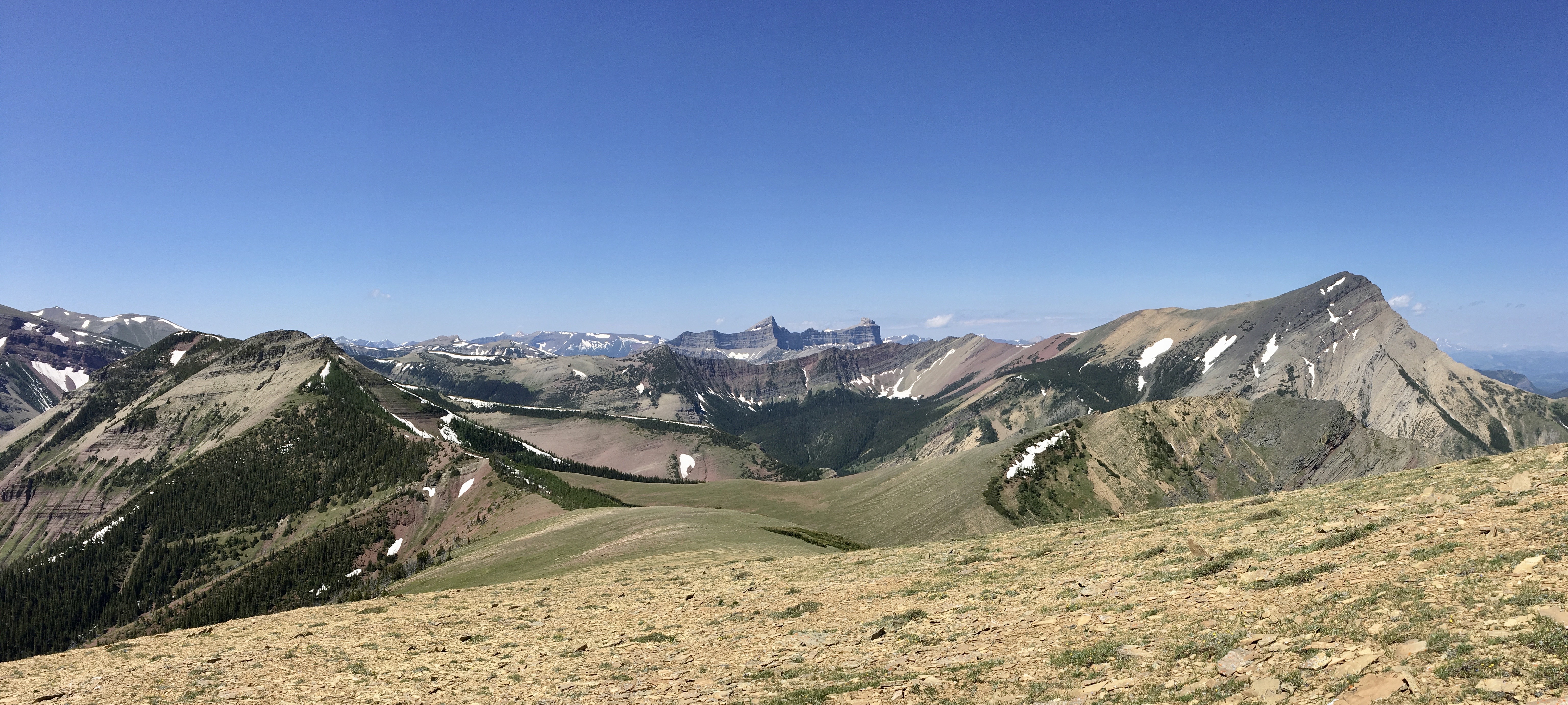July 3, 2020. An easy scramble (with some unpleasant bushwhacking) to the summit of Pincher Ridge in the Castle Wilderness, followed by a quick visit to Drywood Falls.