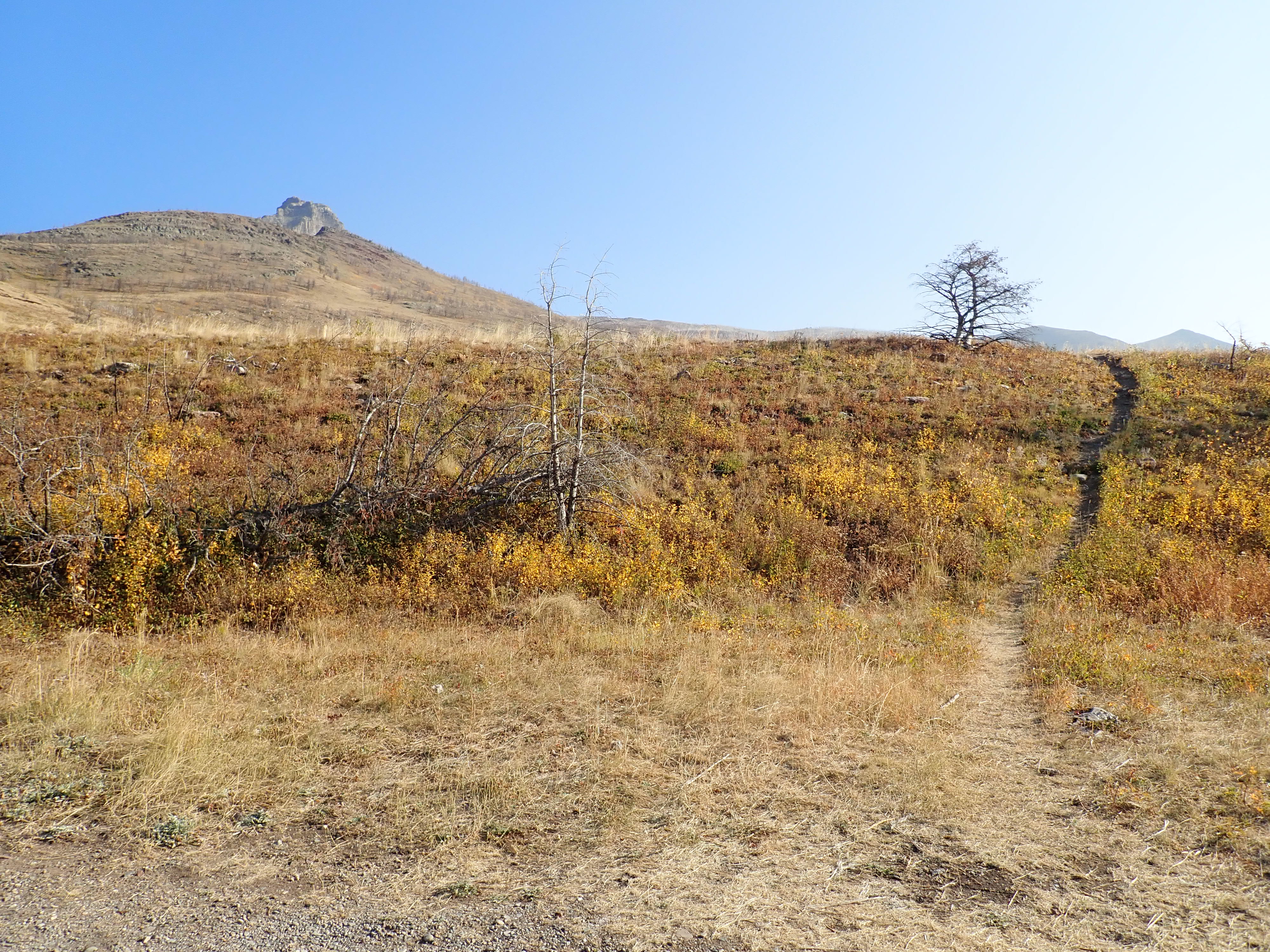 The route begins at the Coppermine picnic area in Waterton Lakes National Park. This is accessed along the Red Rock Parkway, the first right hand turn-off from the access road to the park. Coppermine is about 8 km along the road. Ask Google Maps to drop a pin here: 49.103620, -113.958334. All of the structures in the area burned in the fire of 2017, so as of this writing there are no picnic or toilet facilities at the trailhead. There are two open gravel areas, one right by the turn-off and one slightly further in. Parking at the second area will put you right where the trail begins. From the parking area, the summit of Galwey is visible to the northeast, poking up from behind the contour of its southwestern spur.
