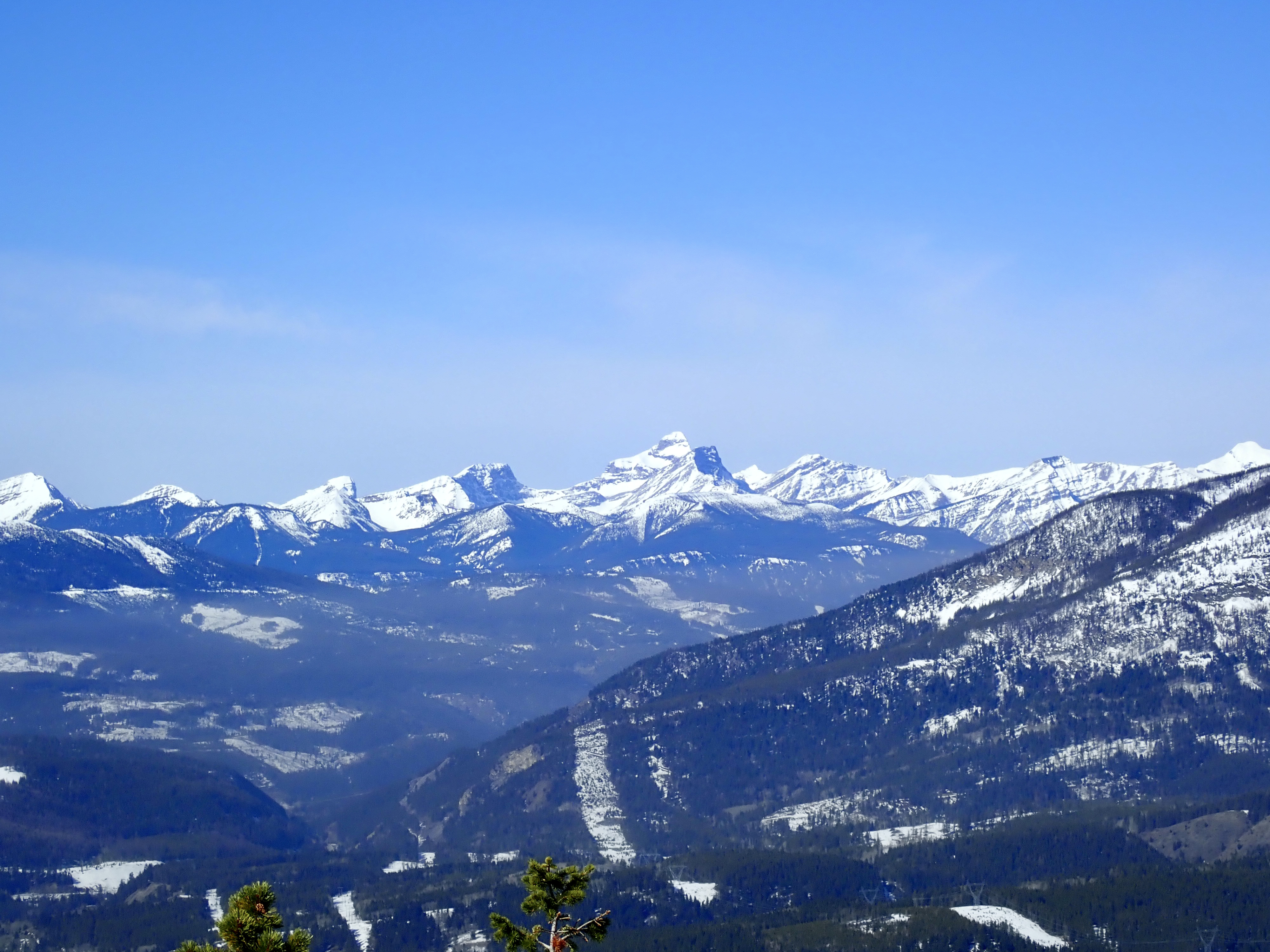 I was surprised to notice that the lower eastern summit was marked by a very large cross. I’d seen a similar cross at the top of Wedge Mountain, so I imagine it’s the work of some local enthusiasts. I made my way over to the cross just to prolong my stay on the top of the ridge. The view was more-or-less the same, aside from affording a bit of a better angle to see Crowsnest Mountain.