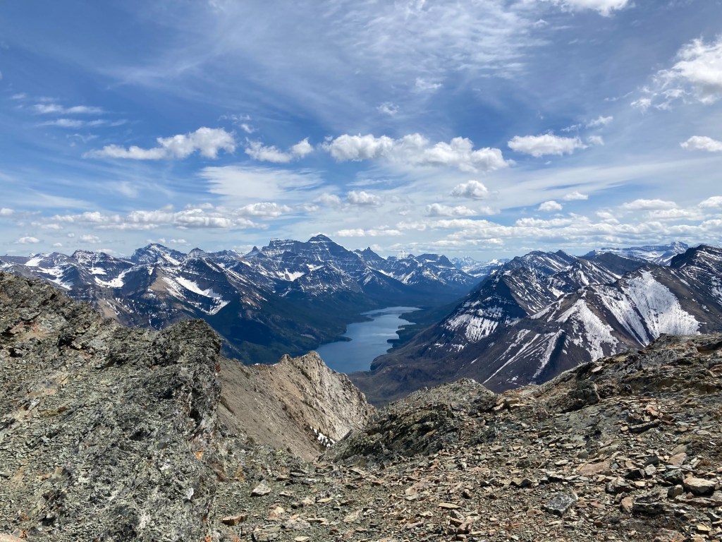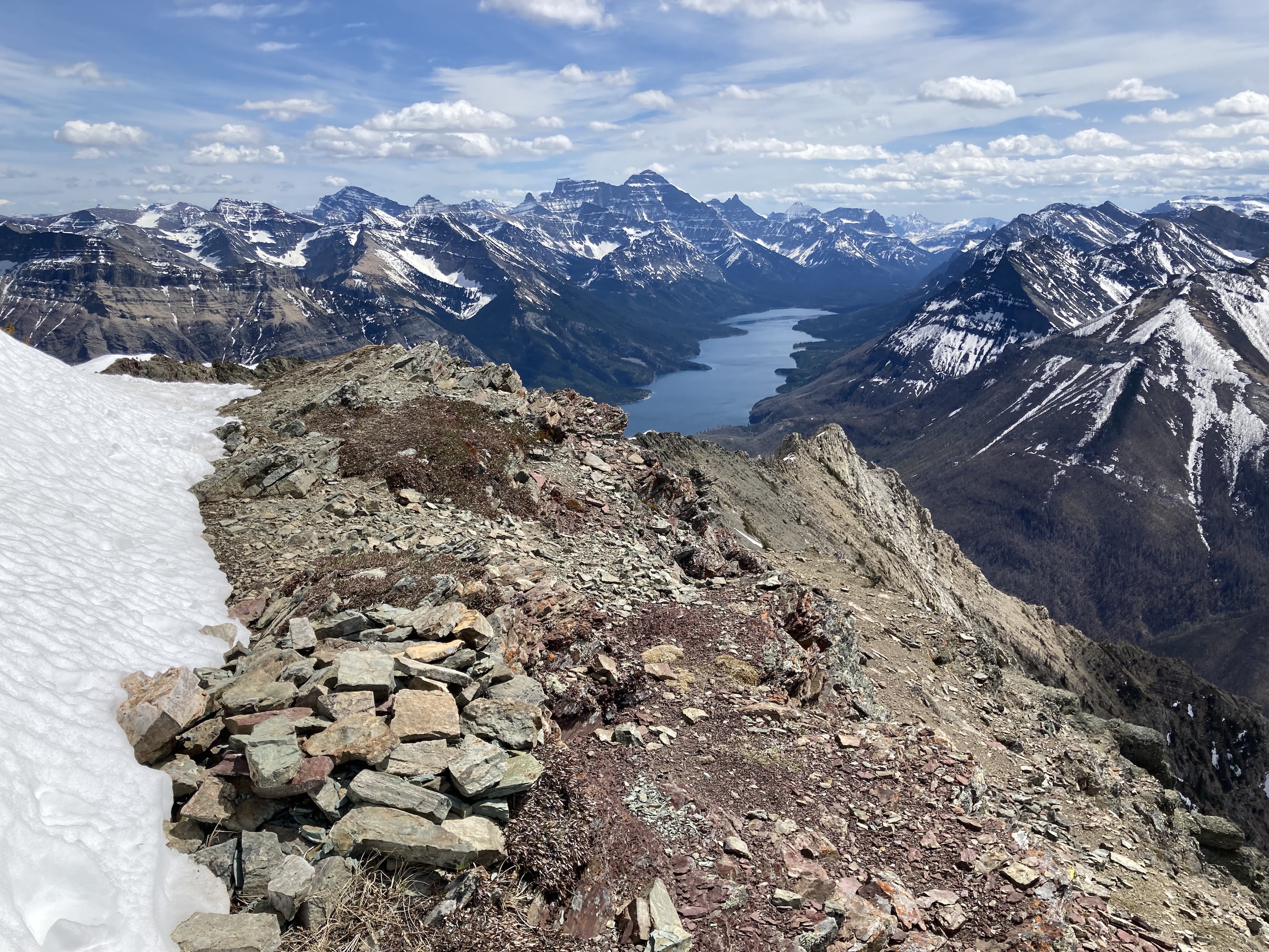 There are 3 published routes that I’m aware of to the top of Mount Crandell. All 3 involve ascending the eastern aspect of the mountain. Kane describes them in the 3rd edition of Scrambles in the Canadian Rockies. One is considered easy (the usual descent route), one medium (‘Tick Ridge’), and one hard (via Bear’s Hump). Thanks to the Lethbridge Hiking Club Facebook group, I became aware of a 4th route to the summit. This one involves ascending the west side of the mountain and begins near Crandell Lake. It seemed to be an easy route, from a scrambling point of view, and I was pleased to discover that the GPS track for this route was among those included with the Topo Maps Canada app. On the last day of May I went to check it out.