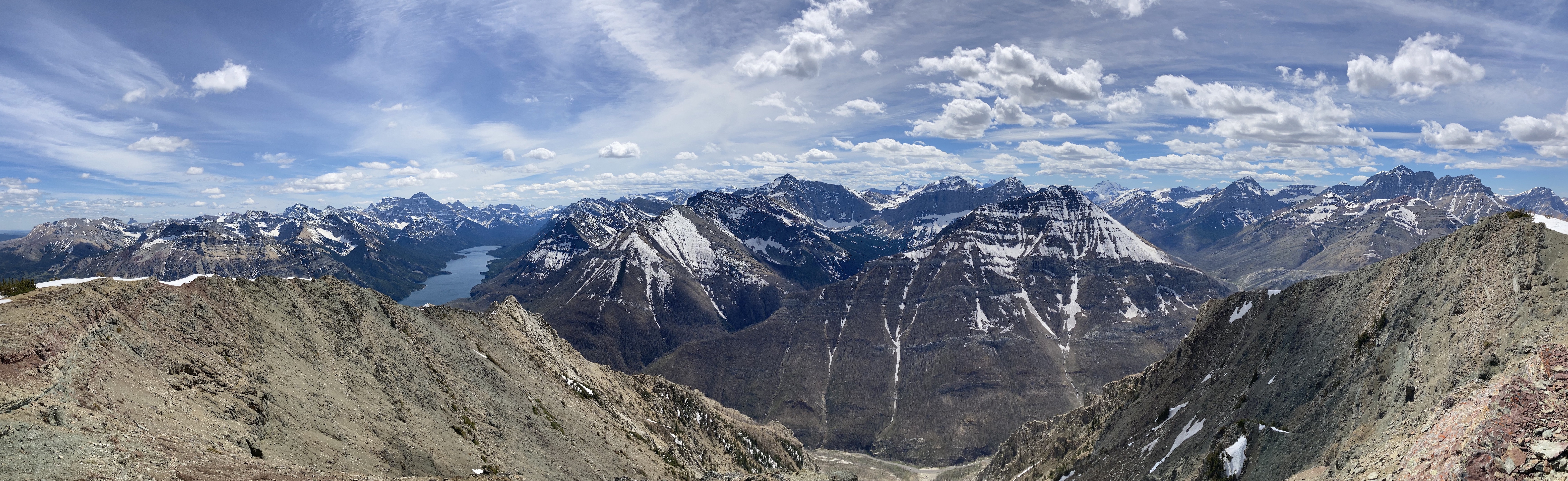 Scrambling purists will likely prefer Kane’s routes over this one, though there are several places along this route where one could engage in some hands-on scrambling. The main advantage of this route over the eastern approaches would be the views. The east approaches will not have the same views of the area around Mount Blakiston, or down the Akamina Valley. In addition, while the eastern approach puts the spectacular views of Waterton Lake and environs behind you as you climb, the western approach has it unfolding in front of you for some of the climb and all of the ridge walk.