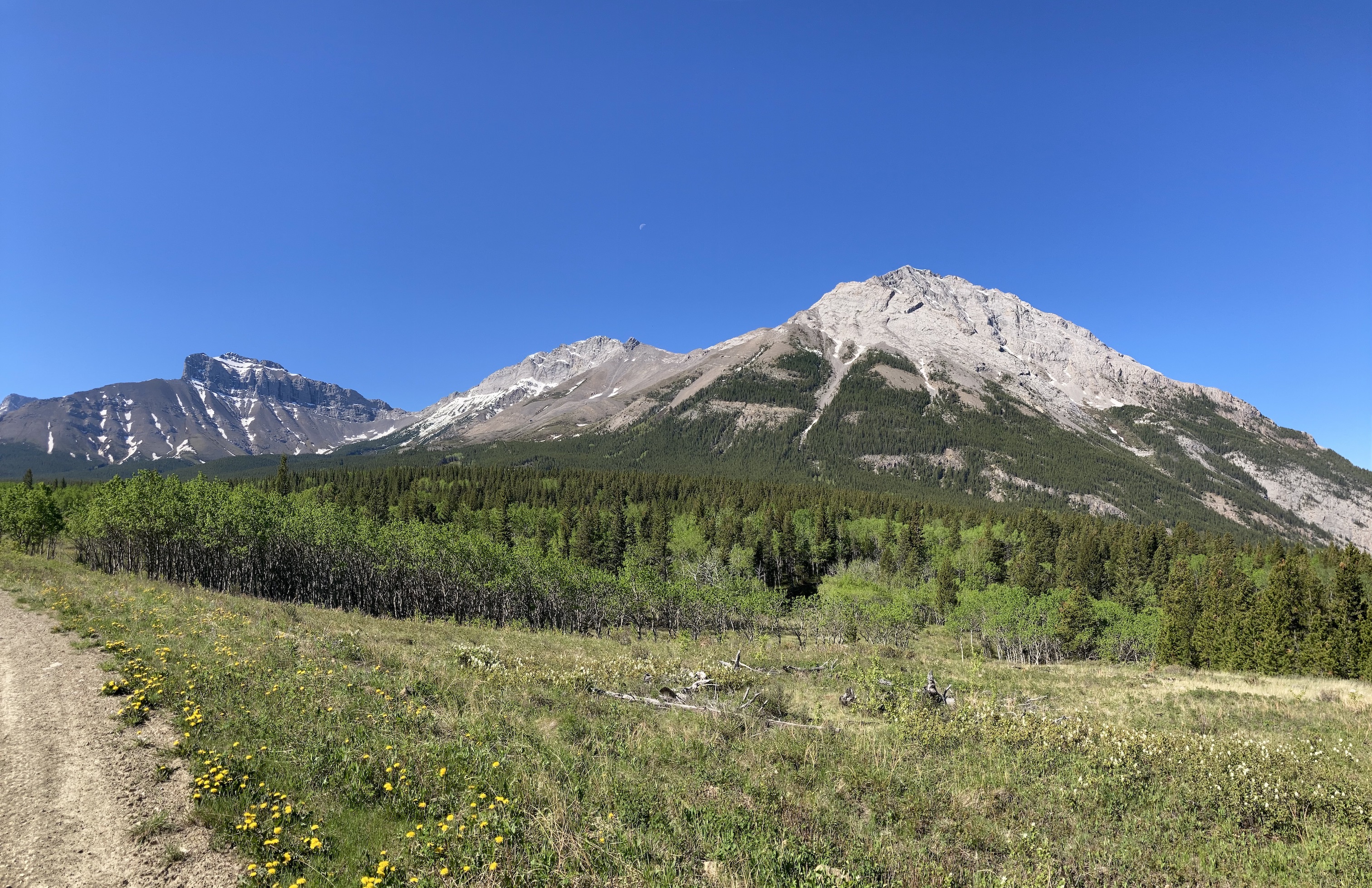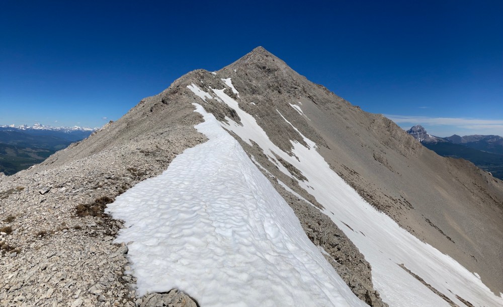 June 2, 2021. The easy scrambling route to a popular summit in the Crowsnest Pass.