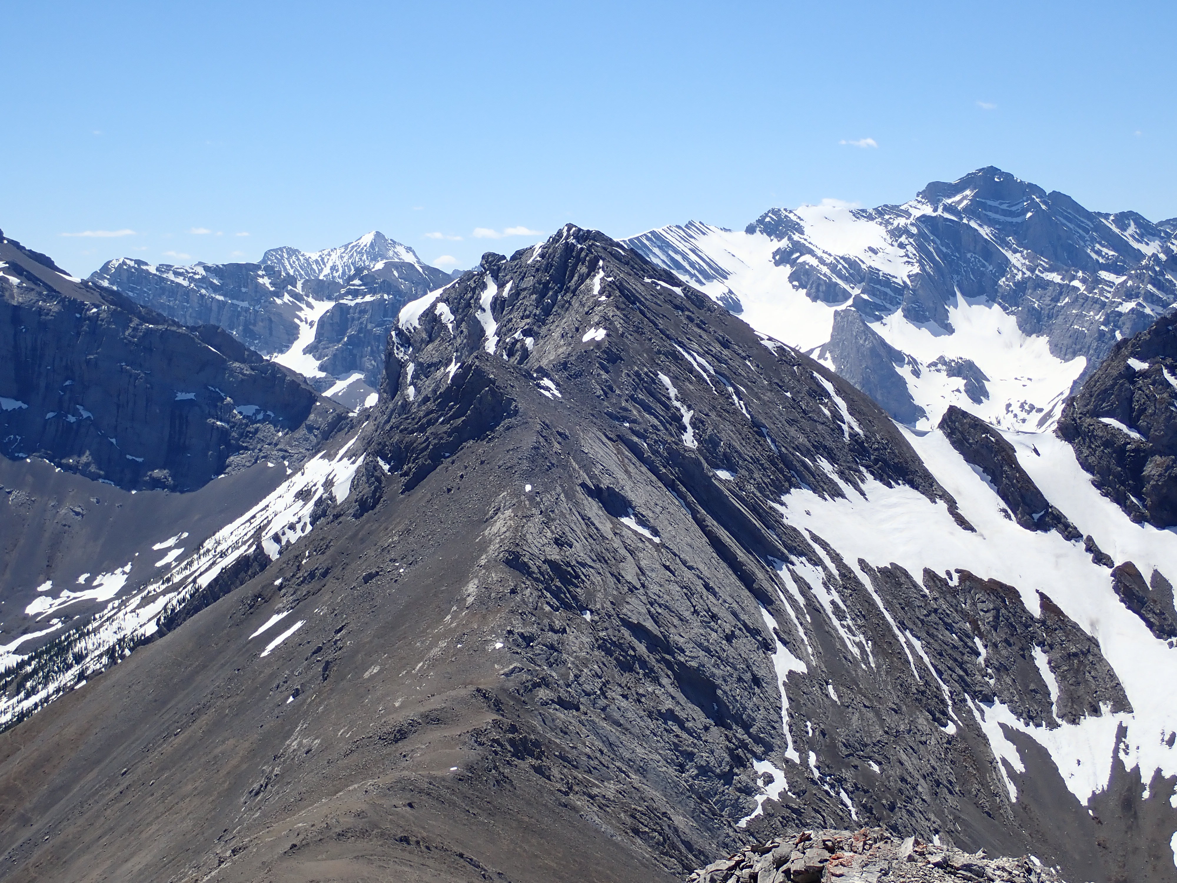 A note on naming: This peak is sometimes called Mount Sentry instead of Sentry Mountain. I’ve gone with the latter since that’s the name that appears in Kane’s book, Nugara’s book, and on the Adventure Guide and Topographic Map of Southwest Alberta which I picked up a few years ago from the tourist information centre in Coleman. Some online maps, including those from Garmin, give the name Sentry Mountain to the peak sitting on the ridge between this peak and Chinook Peak. I’m not sure why that is. In scrambling circles that summit is typically referred to as “Ostracized Peak” – a name which So Nakagawa bestowed upon it several years ago.
