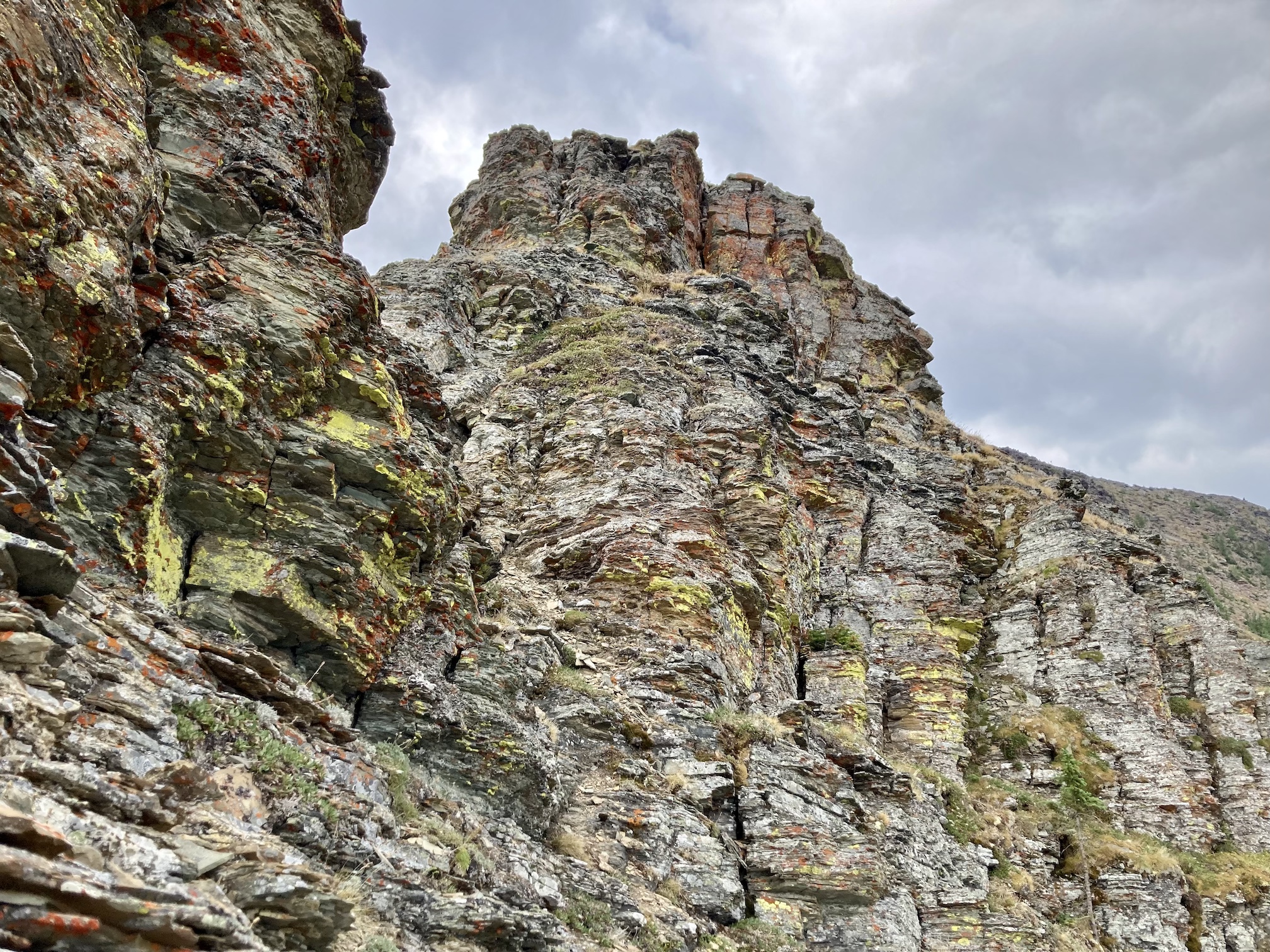 I carried on clockwise and descended along the easy ascent route. Once off the summit ridge I passed through a little larch forest and descended to the lake. On the final part of the descent I made sure to angle my path towards the north shore of the lake (where the official trail arrives) to avoid some rock bands that aren’t visible from above.