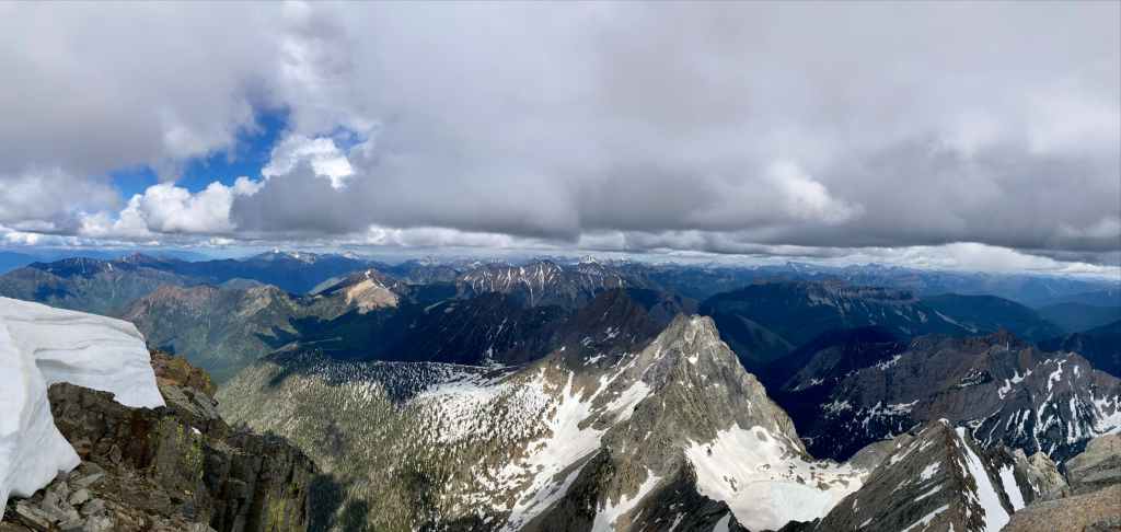 Route overviewMount Fisher as seen from Hwy 3.A closer look at the peak.Sign on Mause Creek Road at the Y-intersection beyond which the road gets much more rough.The sign at the trailhead. The kiosk with the route instructions is a short distance up the trail.After some steep climbing through the trees the trail comes alongside this creek cascading down to the valley bottom.The spot where the creek emerges from beneath a large area of rock fall.The waterfalls. The route cuts sharply left here over the creek and into the trees before ascending above the level of the falls.Above the falls and back alongside the creek. Mount Fisher’s summit finally comes into view.The impressive rocky face of the southern wall of the valley. A crystal clear tarn sat in this part of the valley, feeding the creek.A second tarn a little further up in the valley. The “notch” in the col we aimed to ascend to is visible left of centre where the darker rocks meet the lighter rocks.A closer look at the notch.Coming up on some snow patches. The notch is quite apparent now. We went beyond the treed dark rocks and ascended a gully below the notch.More of the south wall of the valley.Looking up the ascent gully. Definite rock fall hazard here. We stayed right and avoided most of the loose rock.Looking back from part way up. Note the track in the snow leading to a sizeable boulder down at the valley bottom. The track was fairly fresh – that boulder spontaneously fell just a short time earlier. A party of two climbers is visible a short distance down the valley.A distinct pinnacle on the ridge across the valley.Looking back at increasingly impressive views.Sunlight on the far wall of the valley.The last bit of scrambling up to the col.The first glimpse of terrain on the other side of the col. I believe that is Mount Patmore.Looking back to the west towards the Kootenay River and the Rocky Mountain Trench.Looking up towards the summit. The route doesn’t head straight for it. Rather, it first bears to the right slightly. There were markers fixed to boulders along the way to help with route finding as well as various cairns.Ascending. One of the yellow and black markers is visible on a boulder in this picture, but you’ll need to click for the higher resolution image and zoom in to see it.Taking a break and looking south at Mount Patmore and The Steeples.Nearing the crux.The crux. It’s marked by a bolt and ring.Immediately above the crux. There’s some exposure to the left.Quite the drop-off to the left. Not so long before this we were looking up at the impressive rocky face across the valley.Very soon after the crux we reached the summit of Mount Fisher.Me, demonstrating poor posture on the summit. Photo courtesy of Bhaskar Bhowmik.Panorama looking west. Mount Fisher is next to the Rocky Mountain Trench. Cranbrook is in the distance. On there horizon is the Purcell Mountain Range, part of the Columbia Mountains.A closer look at the Purcells.Panorama looking north. Mount Lum and Nicol Lake are in the foreground to the right of centre. A closer look at Mount Lum and Nicol Lake.Panorama looking east.Crowsnest Mountain, far to the east. More nearby to the east was this distinctive mountain. It doesn’t have a name I can find.Mount Frayn and Mount Terrion.Mount Washburn, I think.Panorama looking south. The Steeples, left of centre, drew our eyes most of the time we were on the summit.The Steeples.A closer look at The Steeples.And an even closer look.Mount PatmoreDescending. Now back to the level of the col.The Steeples were still capturing my attention.Back down into the valley.Walking out.