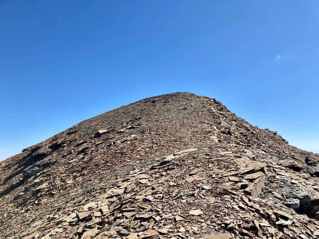 I continued climbing and bore right somewhat, but soon after I realized that I could actually see a clear path up to the summit ridge just above me. I ended up completely missing the dramatic couloir described in Kane’s book which ascends through the black rocks. I was a little disappointed, since I’d been looking forward to climbing that. On the other hand, the way I’d gone was a very rapid ascent and I had spent almost no time toiling on scree. It was a pretty satisfying scramble. I walked up to the summit ridge, turned right and walked 200 metres to the summit. It took about 3 h 20m from the trailhead.