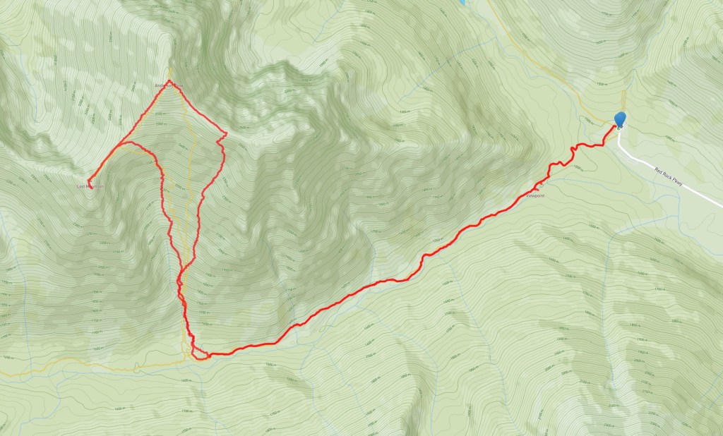 I’m aware of 3 routes to the top of Anderson Peak. One is described in Nugara’s More Scrambles in the Canadian Rockies 3rd ed. It’s a moderate/difficult scramble route which ascends a rocky drainage then tags the eastern summit before continuing to the true summit. Another one involves approaching the mountain as the final part of a long west-to-east ridge walk starting near Twin Lakes. The final one is a route ascending a major drainage directly south of the summit. This is the one I see most often reported in online groups and the one I decided to follow for my first trip to the mountain. As part of the trip I also planned to tag the summit of Lost Mountain which is immediately adjacent to Anderson.