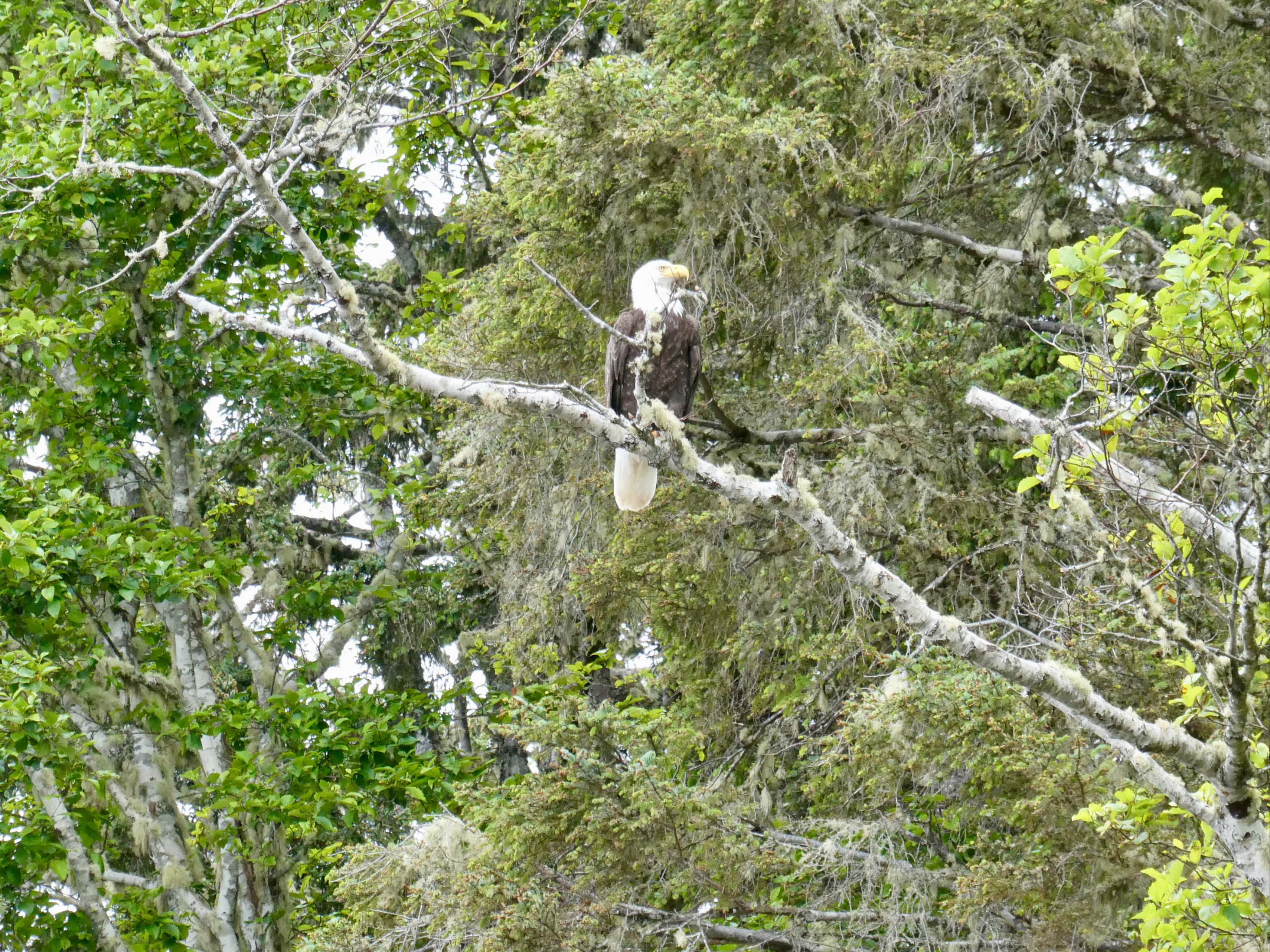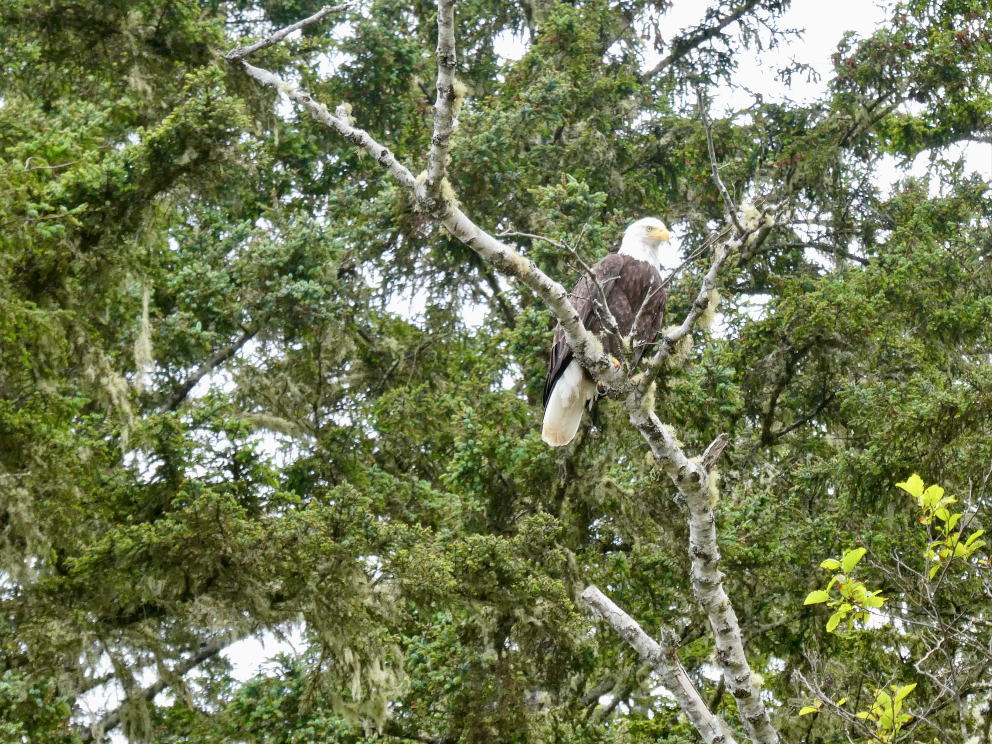 It turned out that the big lazy bear was just the first in many excellent wildlife sightings that day. We would see several bald eagles, a couple of otters, sea lions and whales during our hike and once we got into camp. We enjoyed easy beach travel past Bonilla Point, and the Bonilla and Carmanah campsites. The Carmanah Point lighthouse came into view as we approached Bonilla Point, red and white paint shining when the sun broke through the clouds.