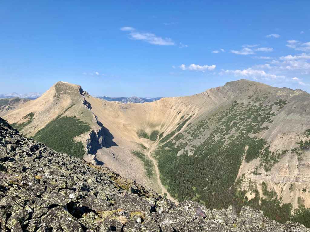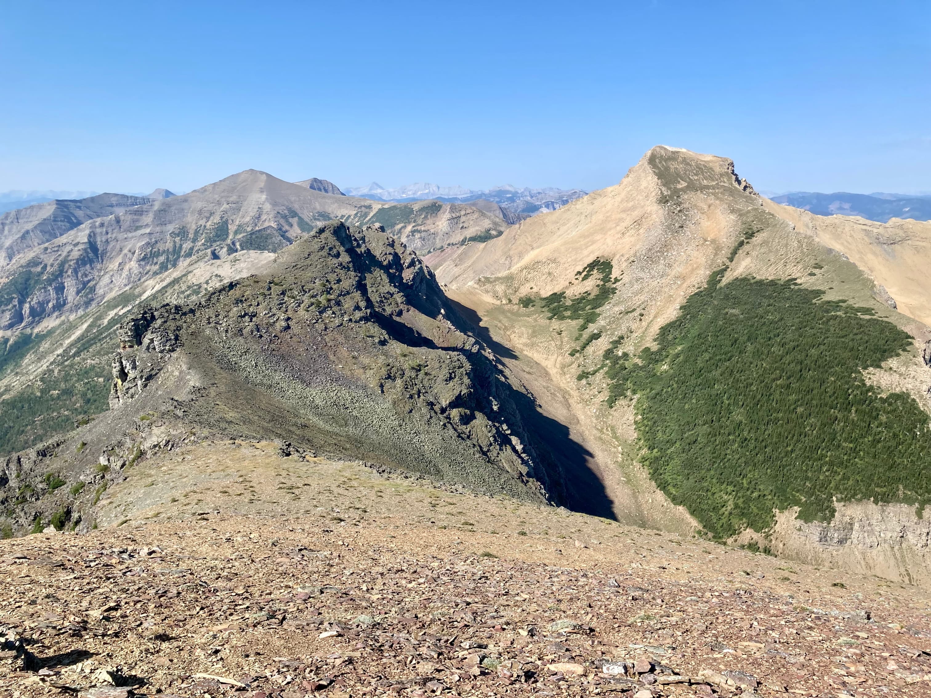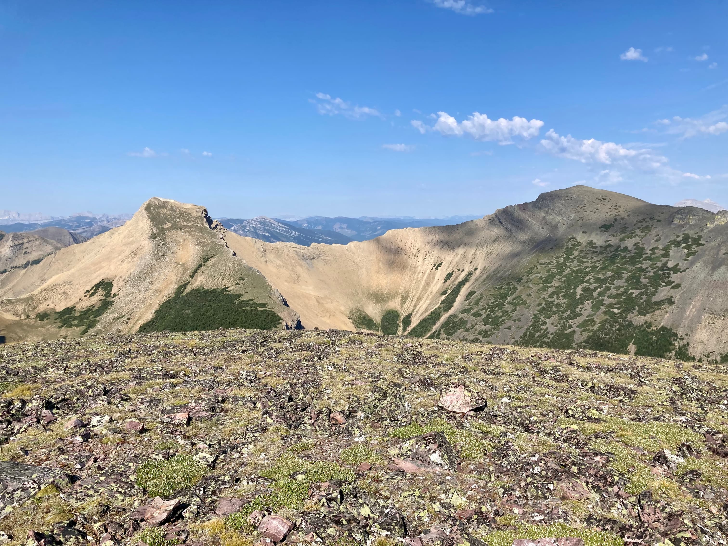 July 29, 2023. Tagging 2 of the 3 peaks of a distinctive mountain in the Castle Wilderness.