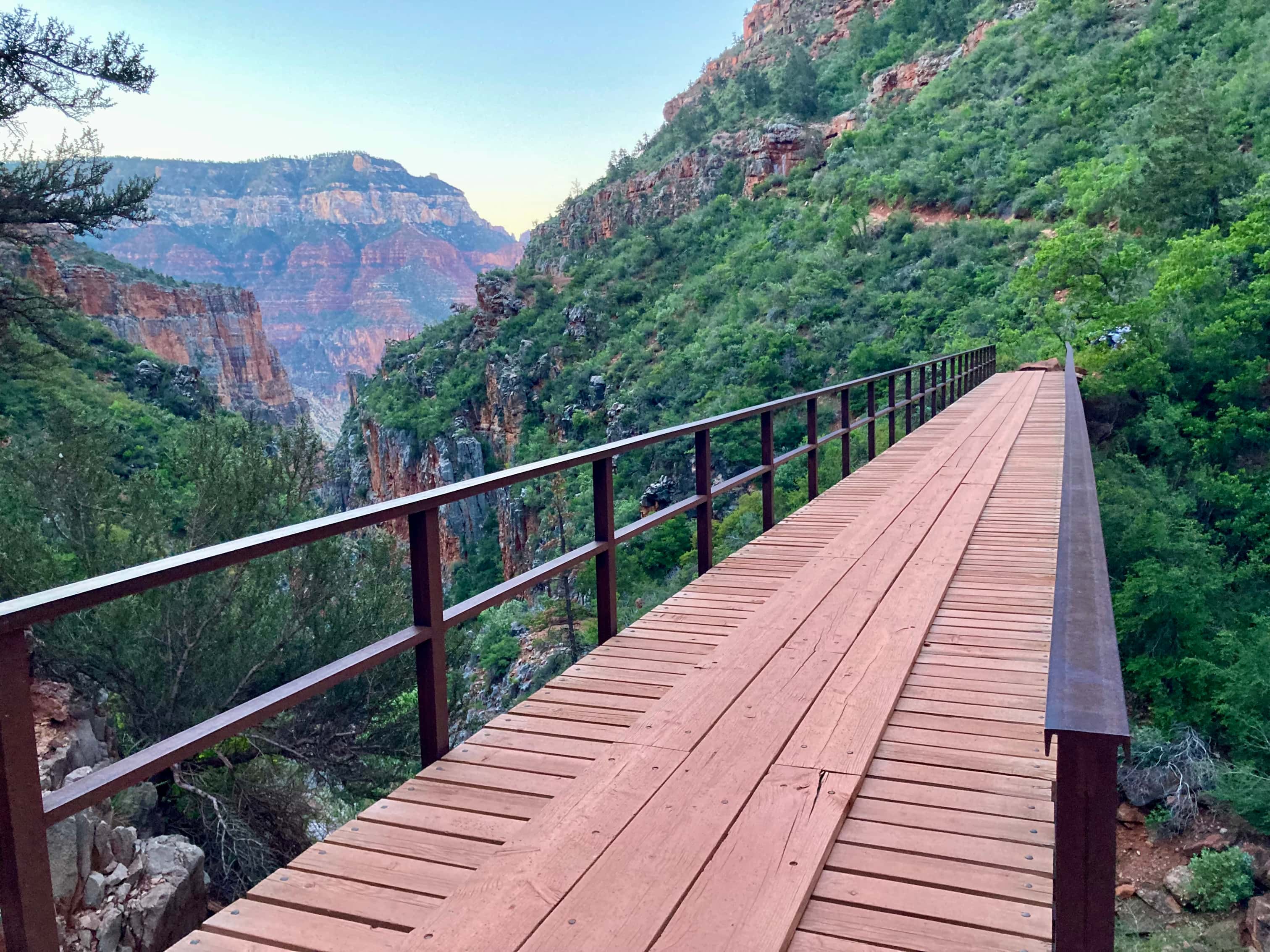 Because our plan was to hike from north to south, we flew in to Las Vegas, rented a car, and stayed the night in Jacob’s Lake which is a reasonably short drive from the North Rim. On the morning of our hike we parked at the North Kaibab parking lot (which was already pretty full at 3:45 AM). To get back to our car we pre-booked seats on a shuttle for the following day.