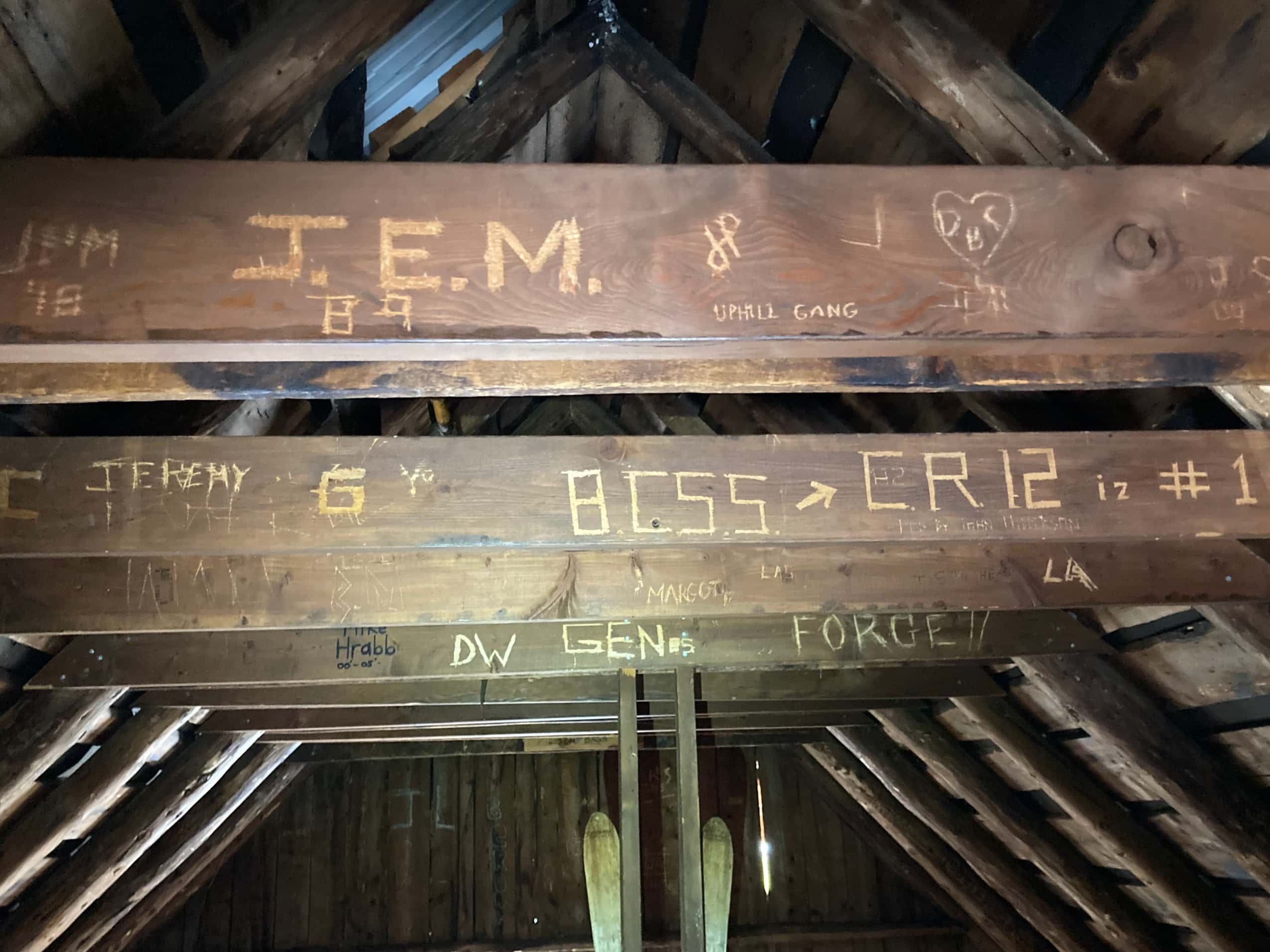 We had plenty of energy and daylight left after we’d settled into the cabin. Our original thought had been to carry on to Sapphire Lakes, but after discussing the snow conditions with Petra it became clear that travelling that way would be slow going. Instead, we decided to visit nearby Helen Deane Lake and stop along the way to check out the Kokanee Glacier Cabin’s predecessor – Slocan Chief Cabin. We returned to the signed intersection at the northeast edge of Kaslo Lake and stomped through the snow until Slocan Chief Cabin came into view. This was the original backcountry cabin in the area. It was built in 1896 and originally used by silver miners. After the mines shut down, local mountaineers and backcountry skiers started to use it for backcountry accommodation. That continued for decades, but eventually it was recognized that the cabin was in need of major restoration. In the 1990s plans were put in place for Kokanee Glacier Cabin to be built. Once backcountry accommodations were moved over to the new cabin, Slocan Chief Cabin was restored and repurposed as a small backcountry museum.
