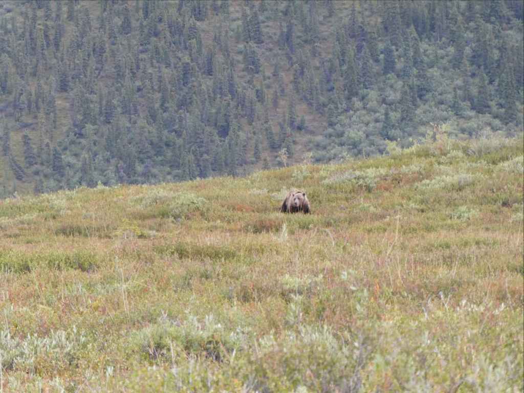 As we carried on, the road was steadily more crowded by the surrounding vegetation. We found that our line of sight was more and more restricted. Around here was where we had our first bear encounter. Luckily it was our only close encounter and not a particularly close one at that. We were bear-calling regularly as we moved along, and coming around a bend we glimpsed a grizzly on the road who seemed to be already turning and running away as we appeared. We took a moment to get the whole group together and let some time pass for the bear to hopefully move off. We then proceeded along the road, yelling all the while. We didn’t see the bear again.