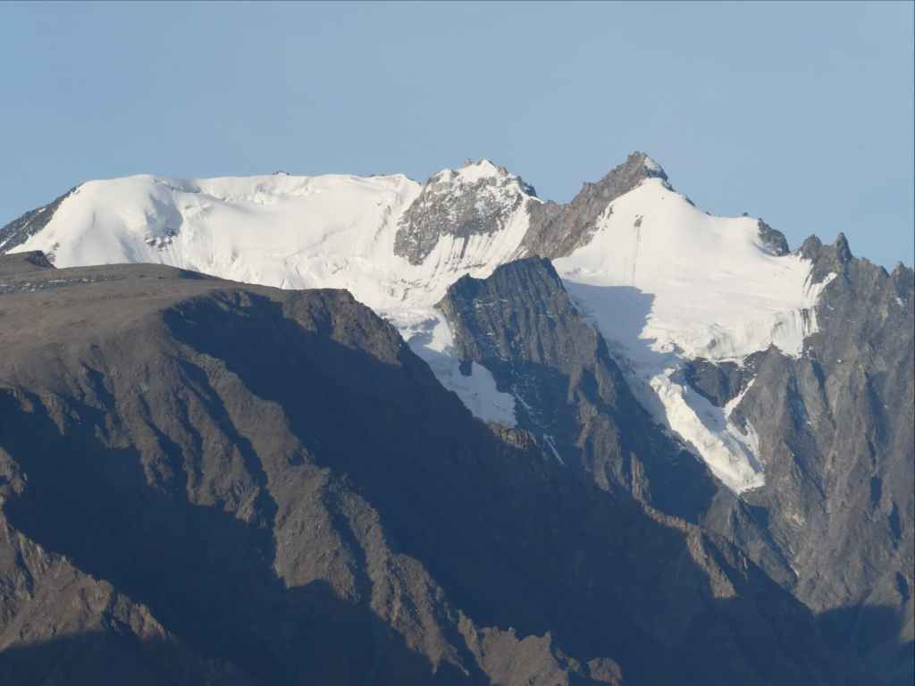 We had a beautiful clear day and as we scanned the peaks a broad mountain in the far distance caught our attention. It was only partly visible and off to the southwest. We referenced Peak Finder and our maps, and concluded that we might actually be looking at Mount Logan, Canada’s tallest mountain. More picture-taking ensued. Since returning home I’ve compared the pictures to different maps, taking into account the direction we were looking and the foreground peaks. In the end, I can’t be 100% sure we were looking at Mount Logan, but there’s a reasonable chance we were.