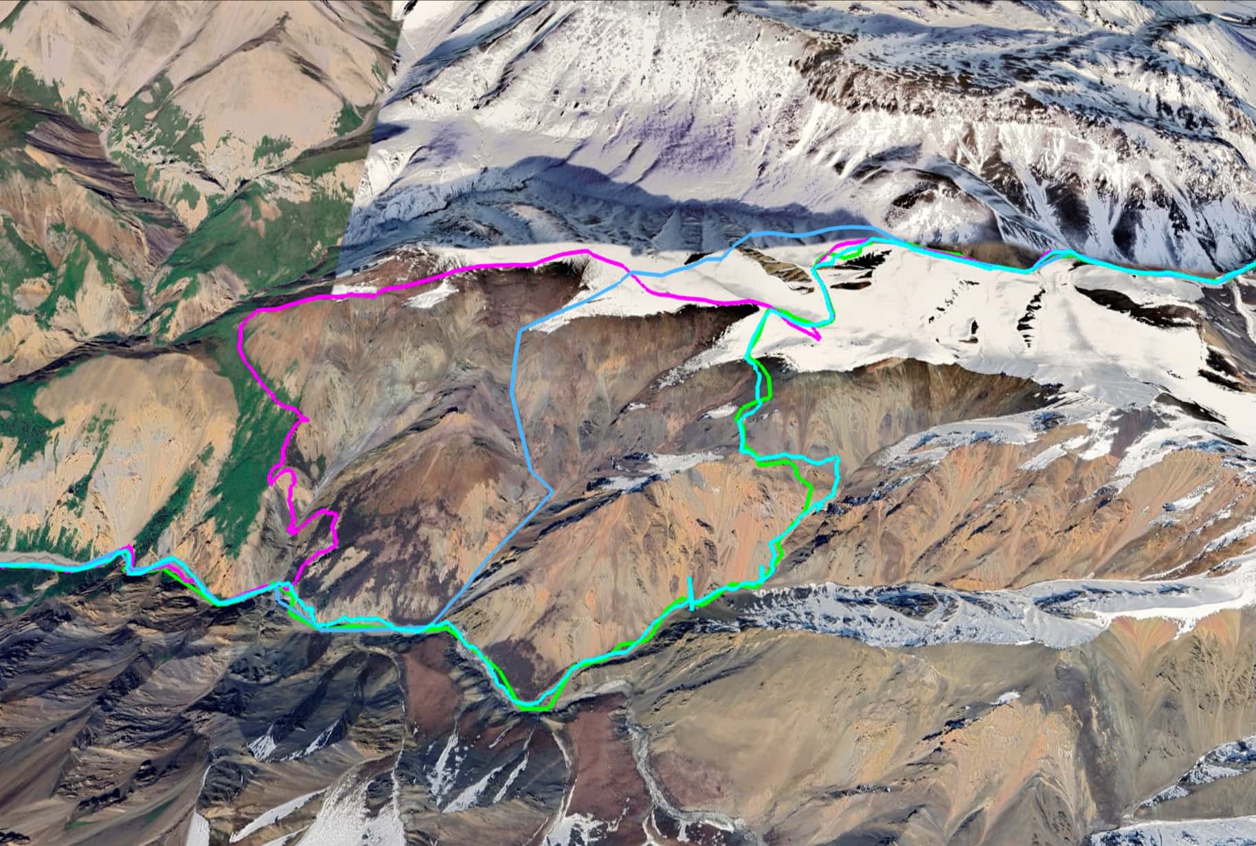 For the Donjek, there’s a 6 page text route description on the Kluane National Park website. The description is sometimes open to interpretation. No detailed map is provided. There are no pictures. In bold type at the top it says, “A route is not a trail. Routes are not marked with signs or maintained in any manner. The route described here is only a suggestion that may help guide you on your trip. Self-reliance and wilderness travel experience are essential, including excellent route-finding skills, map and compass skills. It is the responsibility of individual hikers who choose to follow such routes to adequately prepare and be prepared to rely on themselves.”